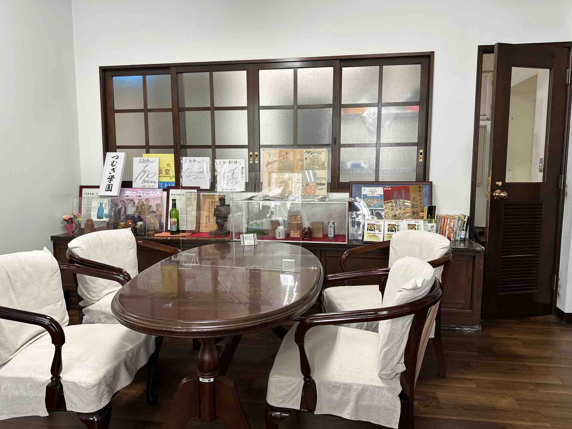 かつての弁当関係の史料が並ぶコーナー、明日もここは応接室のように豪華です。