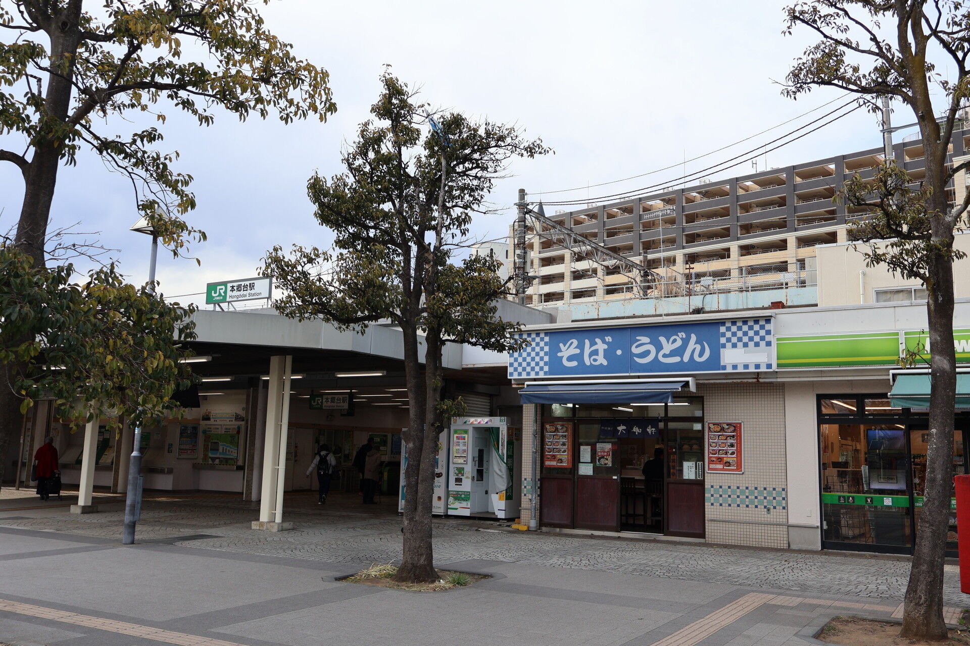 JR側から3月に見た箱根そば店舗。