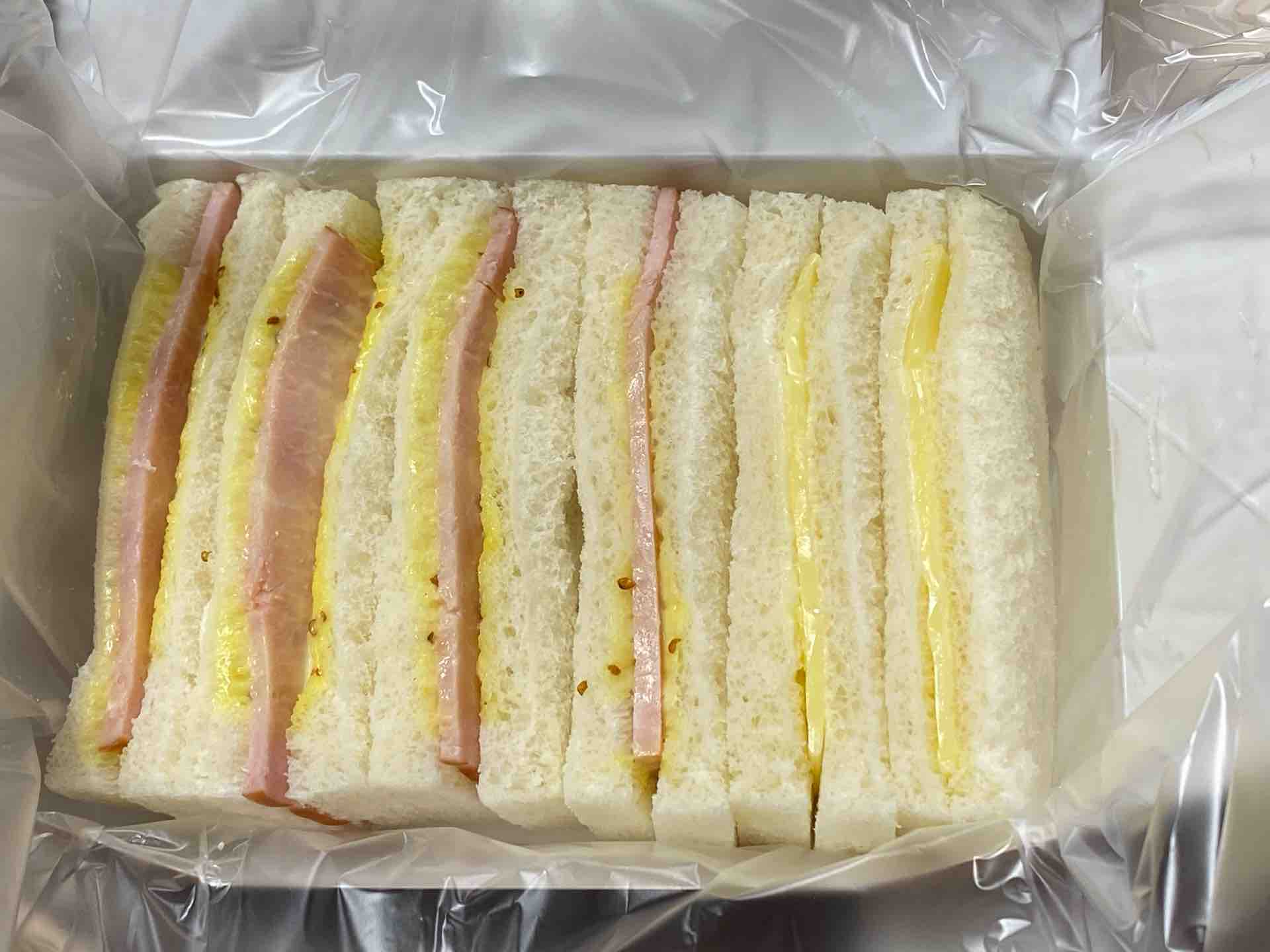 ハムサンドとチーズサンドのシンプルな作りです。押寿しよりも一足早く戸田工場製となりました。