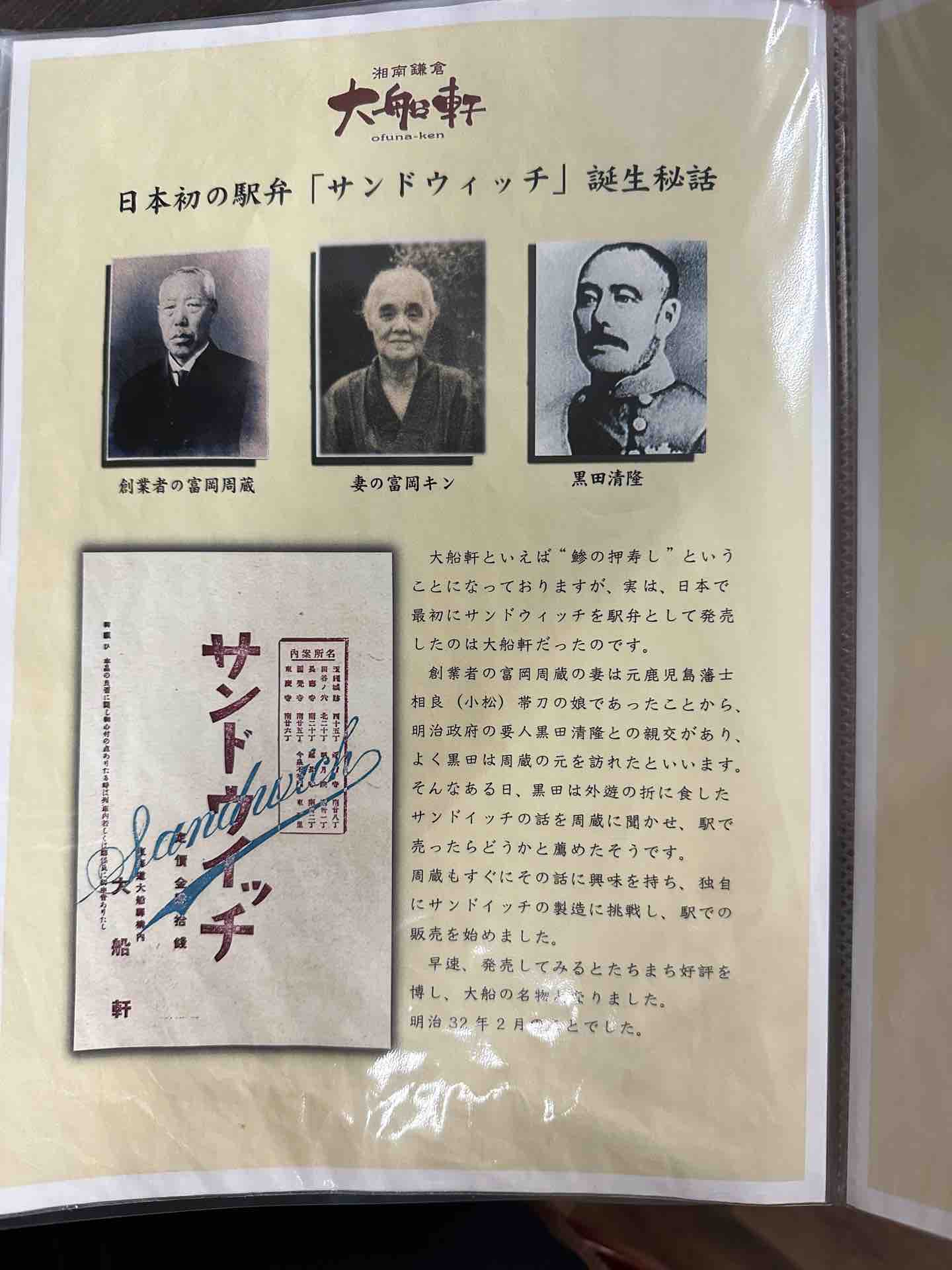 創業者・富岡周造は、鉄道が開業したばかりの大船で旅館を営みながら、駅構内で弁当などを販売していました。