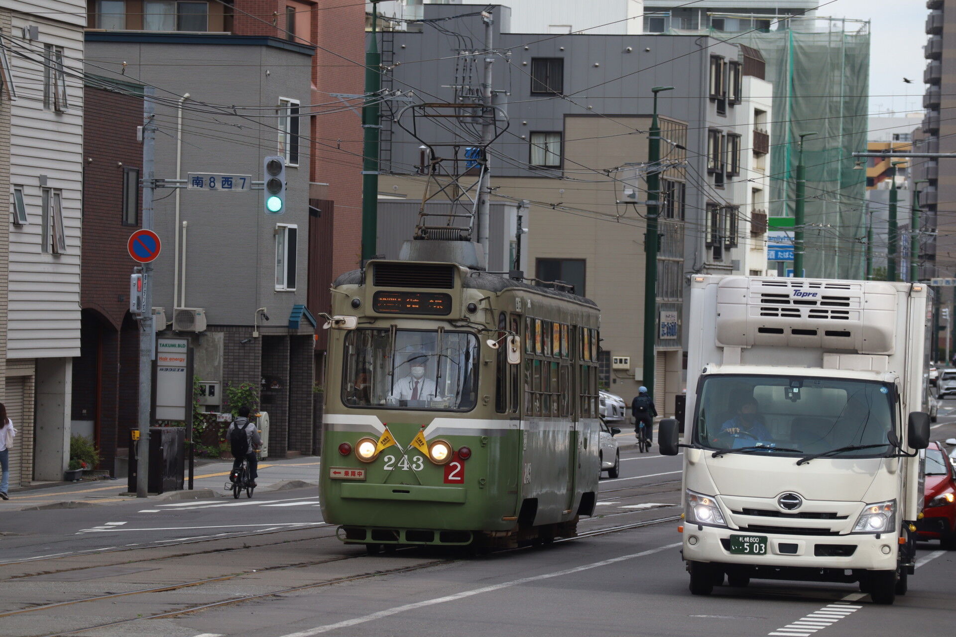 札幌市電の旧塗装で走っているやつ!