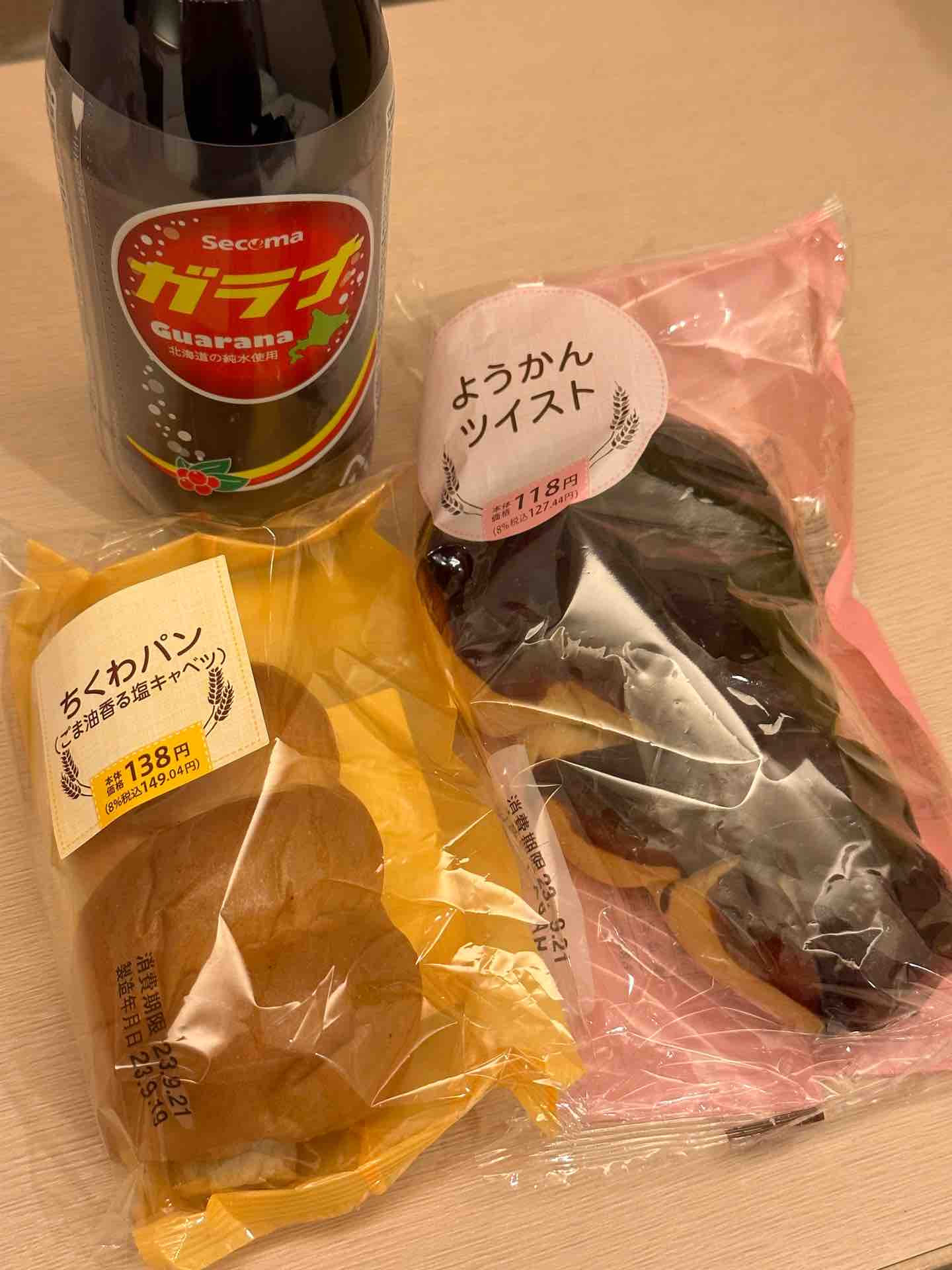 興奮して、ようかんツイストとちくわパンを購入。