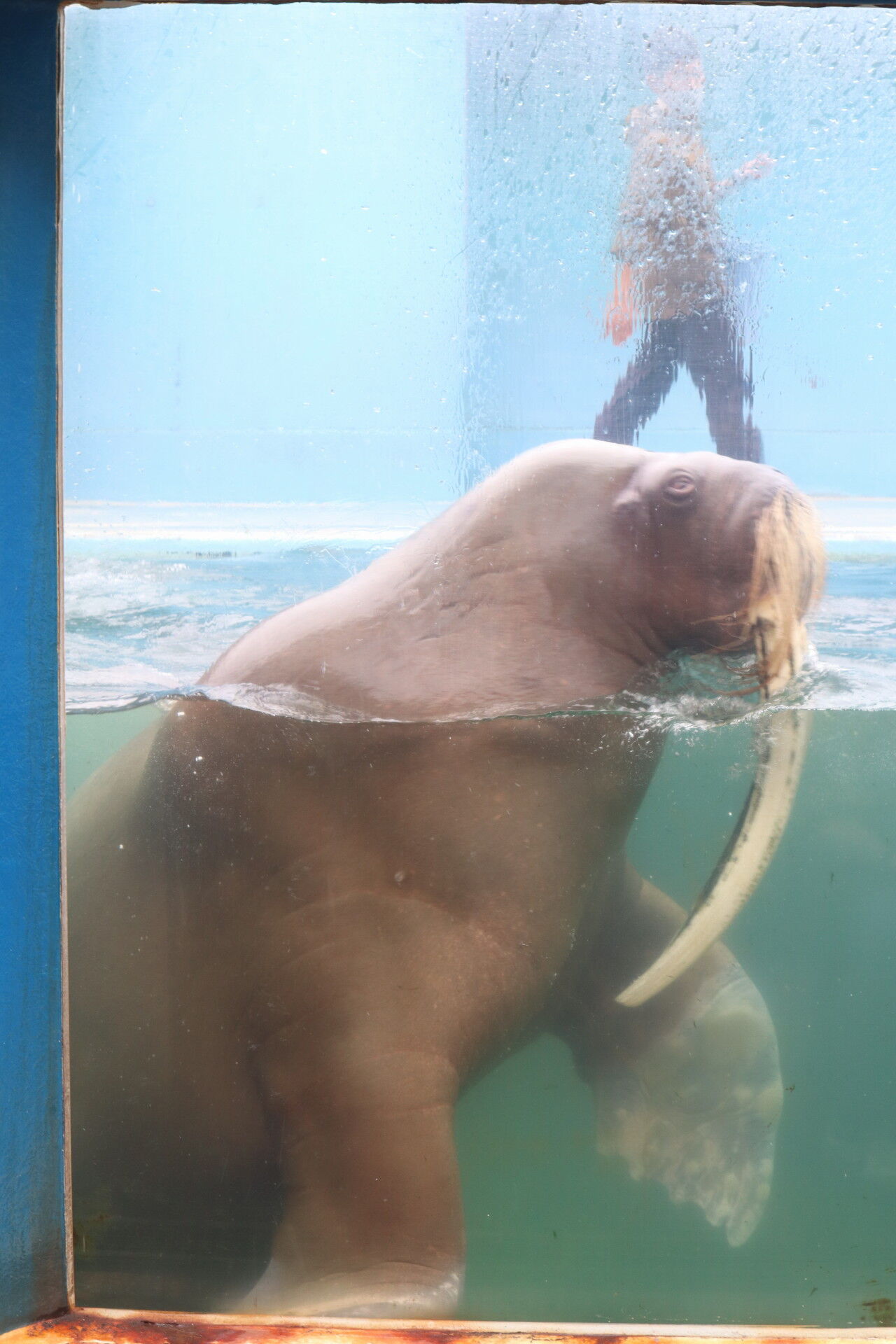 セイウチのプールはね、いっぱい食べていっぱい出すのでどうしても色が……。