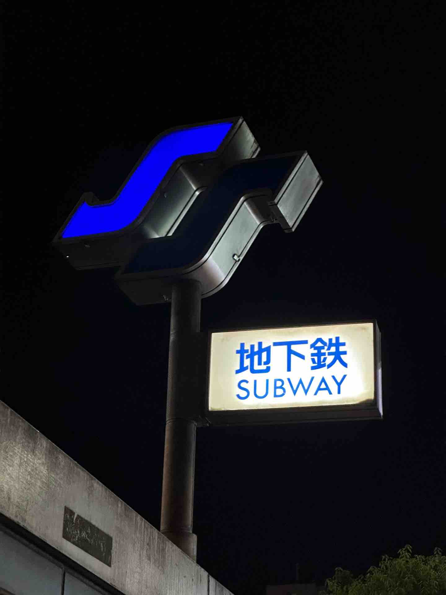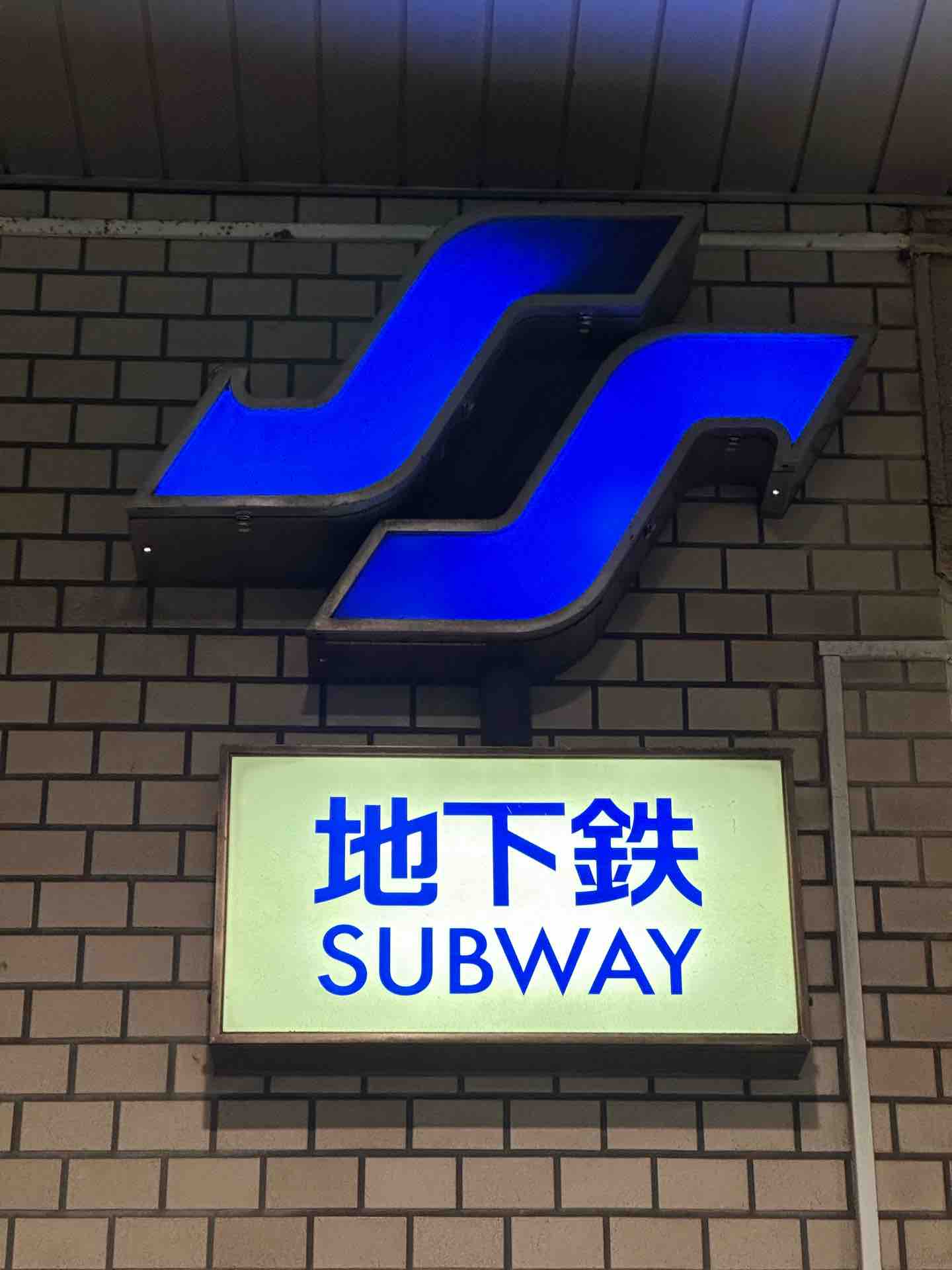 地下鉄のサイン。ゴシック4550らしい文字に、ロゴマークの立体。リッチですね。