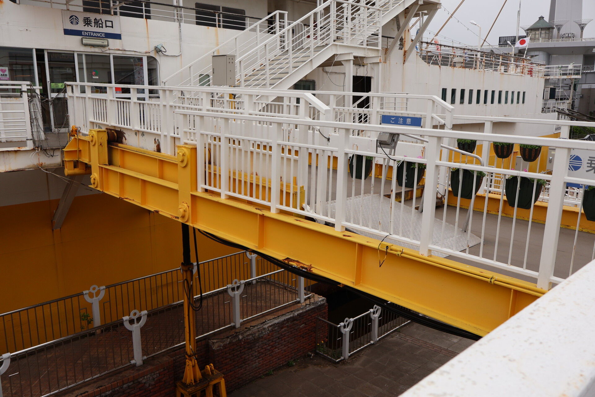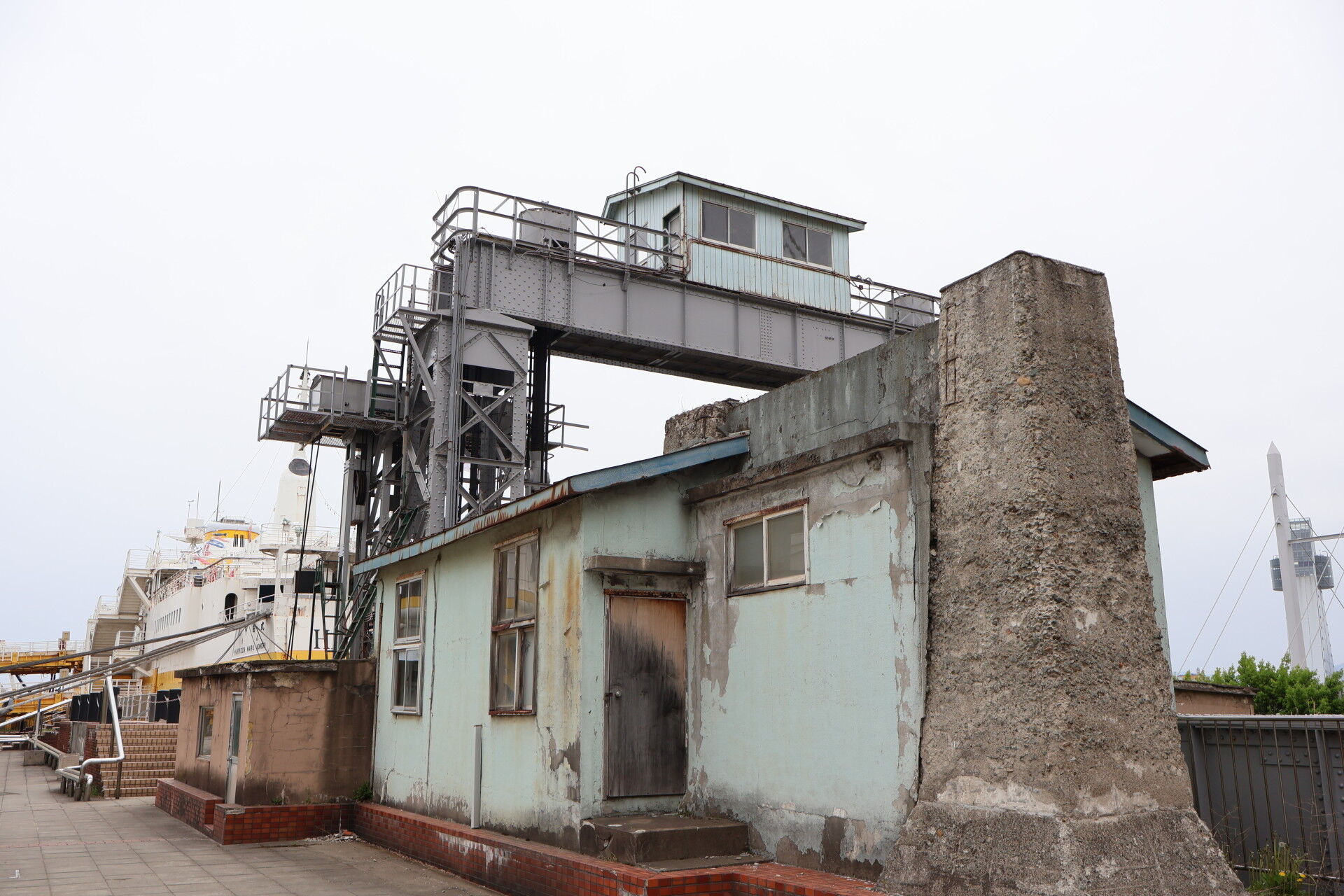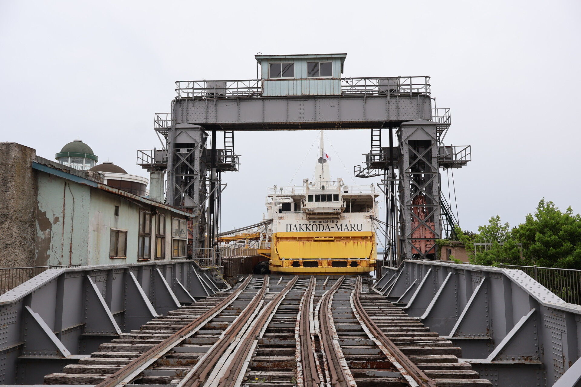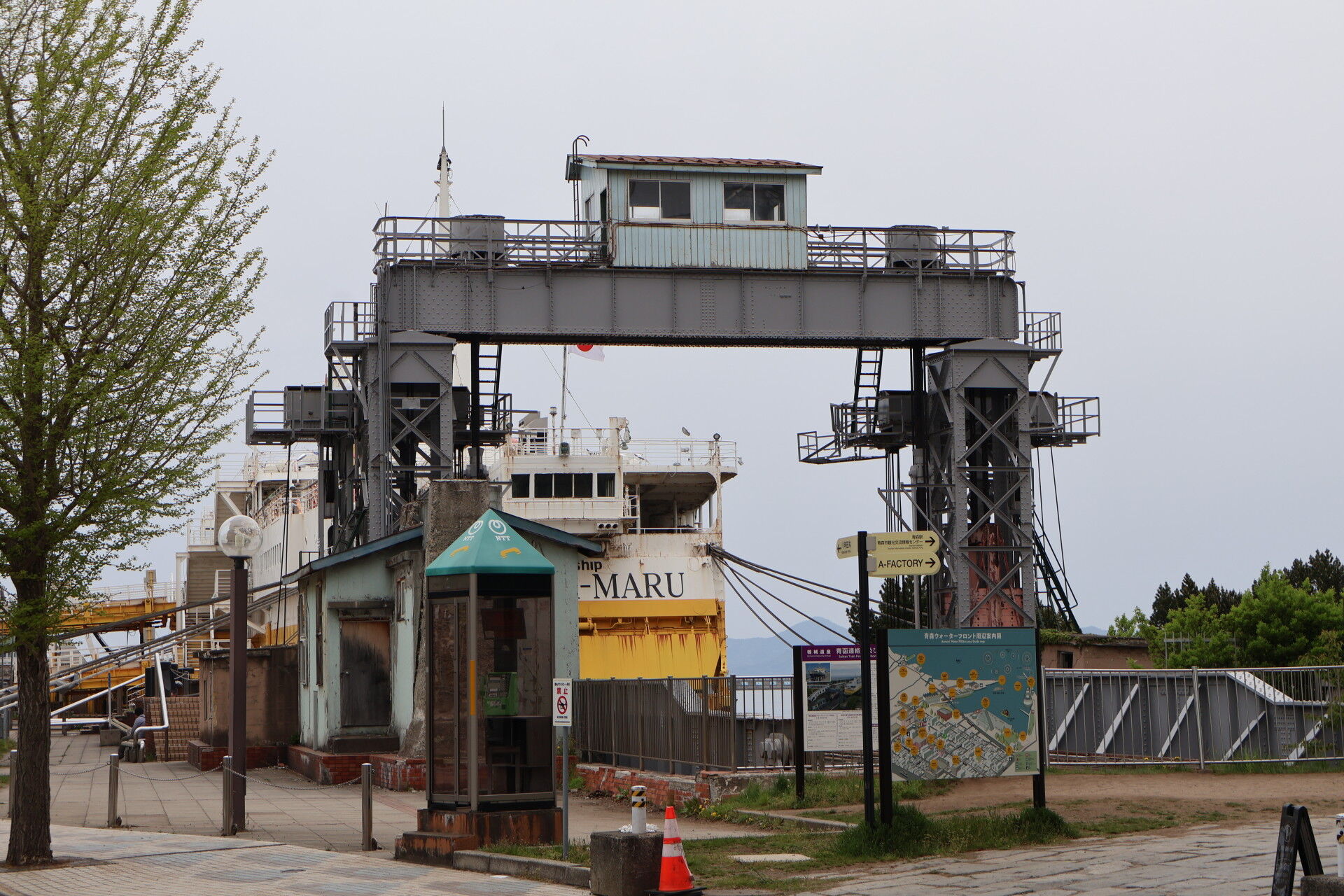 現在も、船に鉄道車両を載せる可動橋が残され、