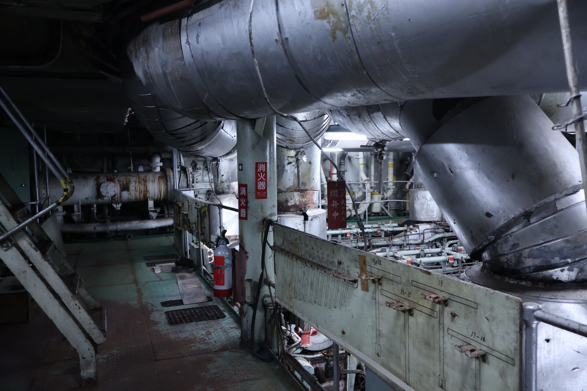 摩周丸はこのあたり、展示スペースとして大々的に改装されてしまっているんですが、いっぽうで手付かずのままになっている区画もあるそう。消防法とかアスベストとかいろんな問題でそのままなんだとか。