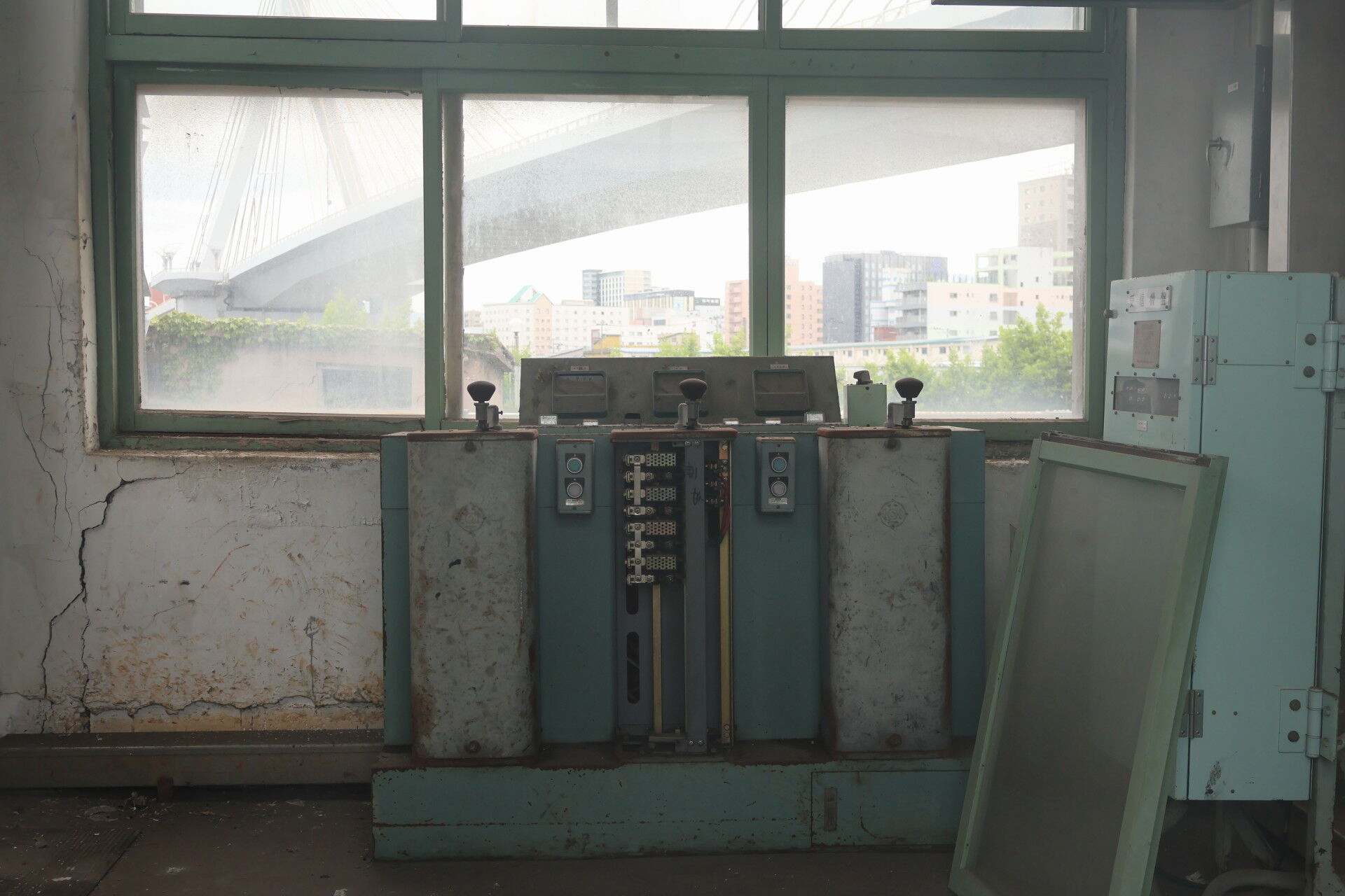 可動橋の中には、まるで電車の直接制御器のようなコントローラーがありました。
