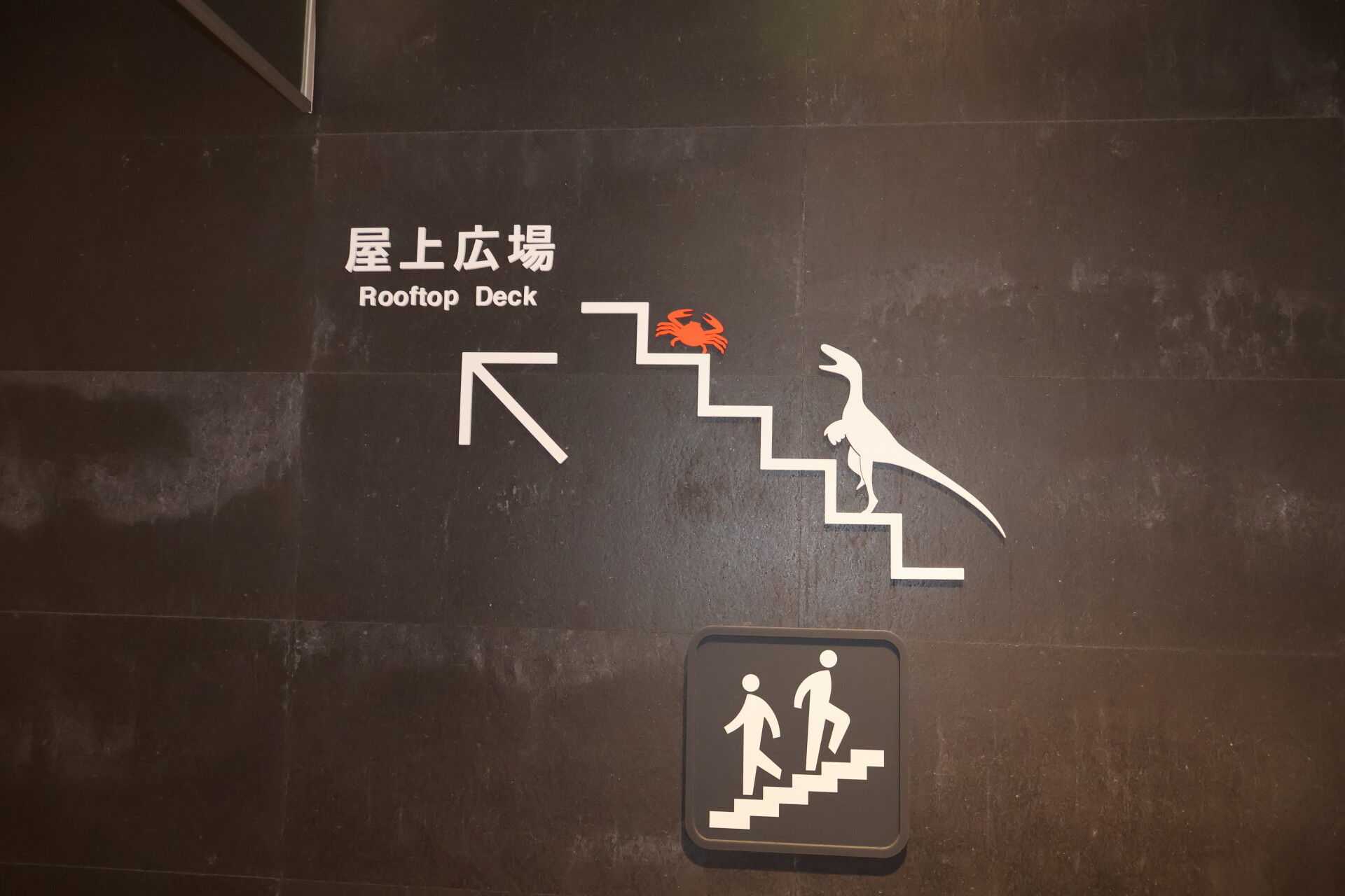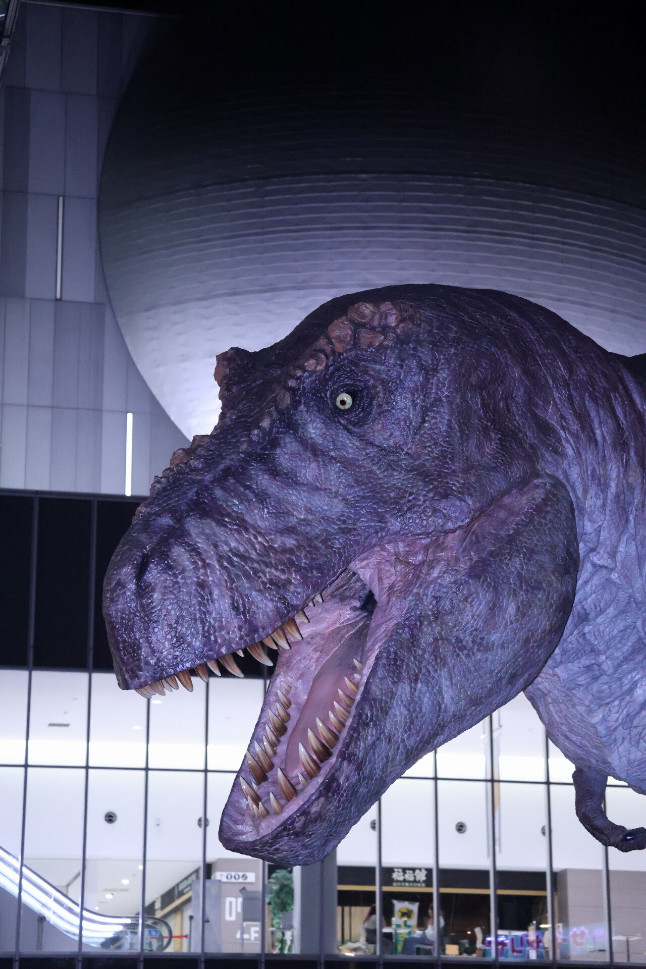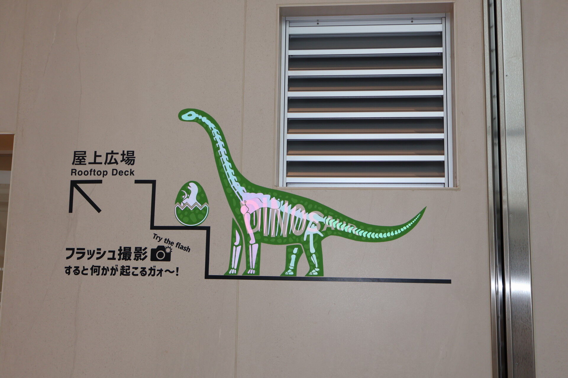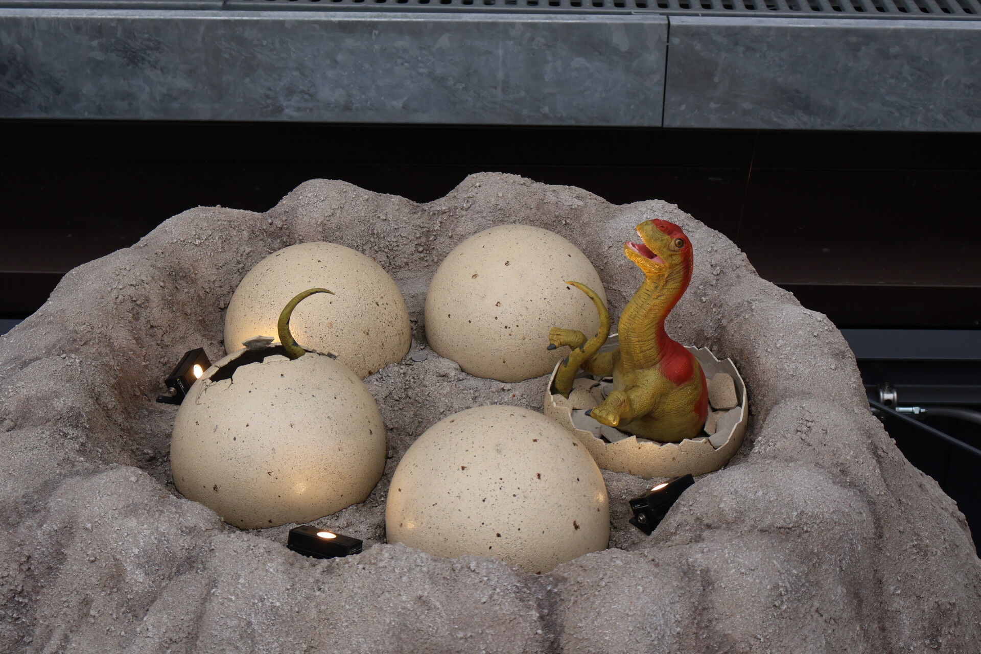 さっき新幹線ホームで見た恐竜オブジェを見に行きましょう。