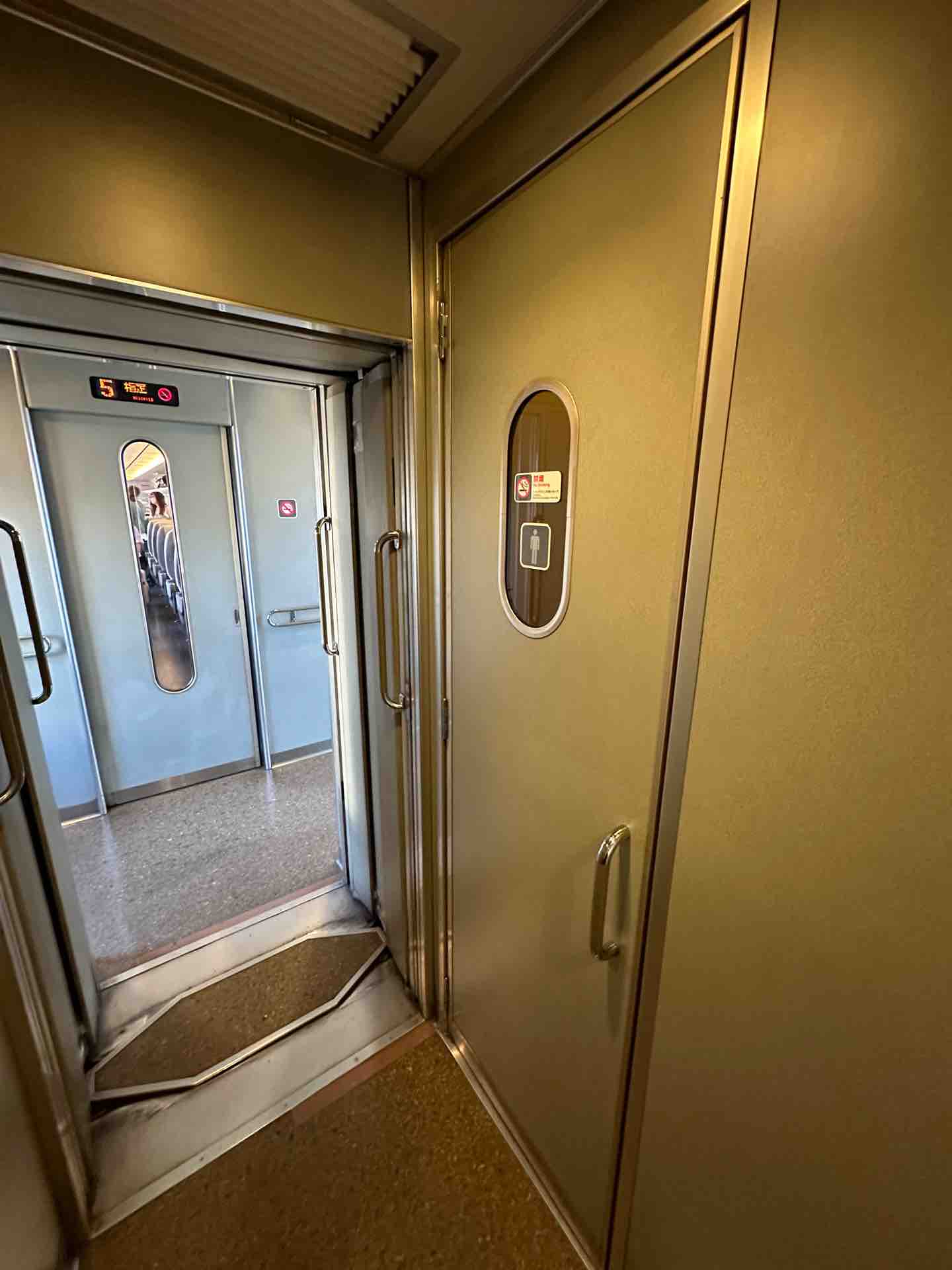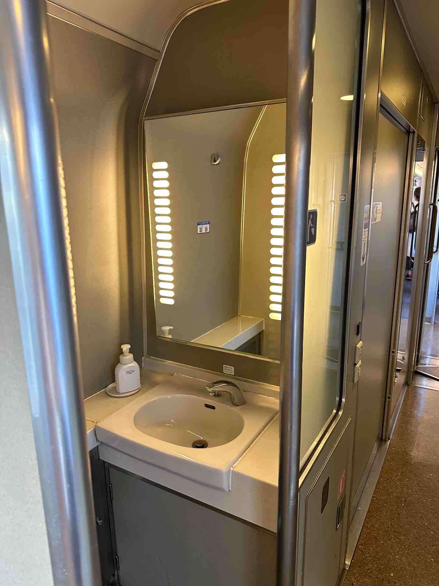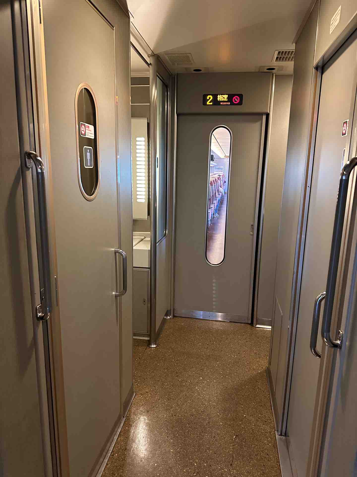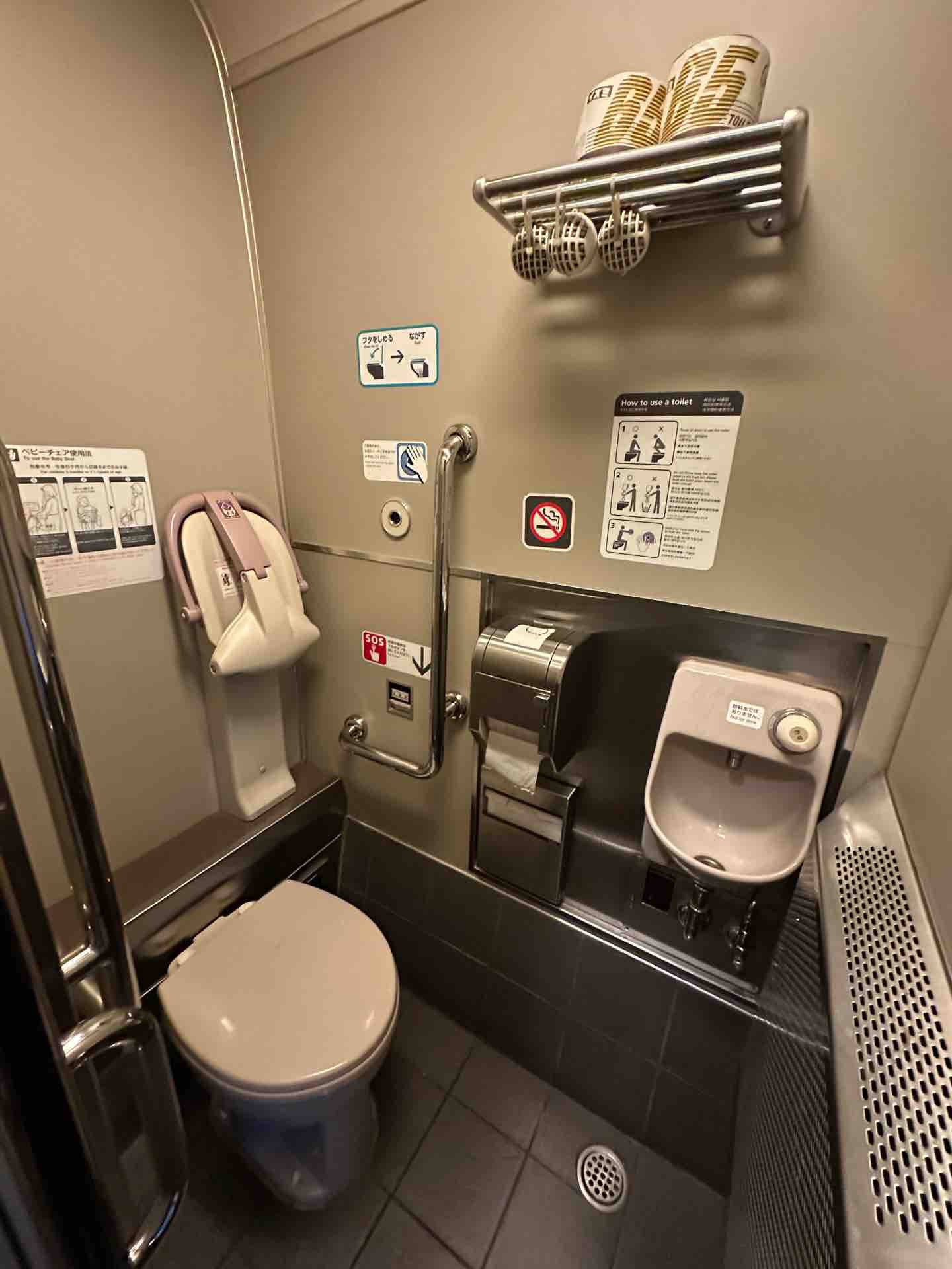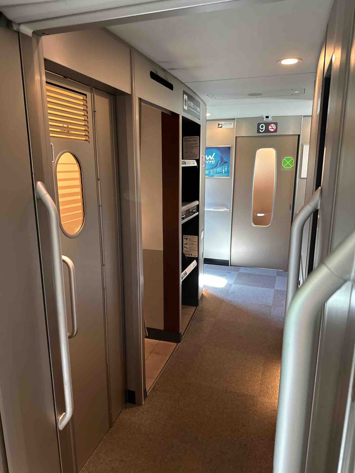 グリーン車のトイレ。3両の真ん中、9号車にあります。