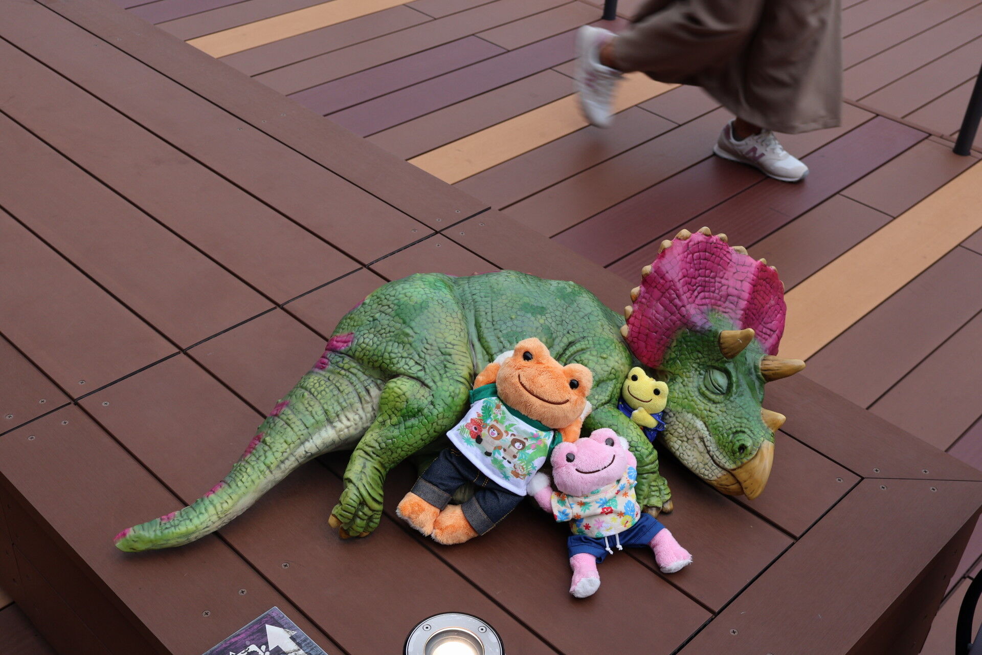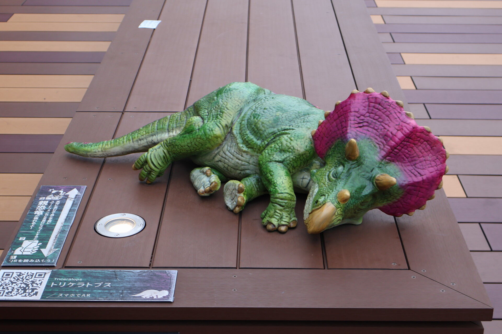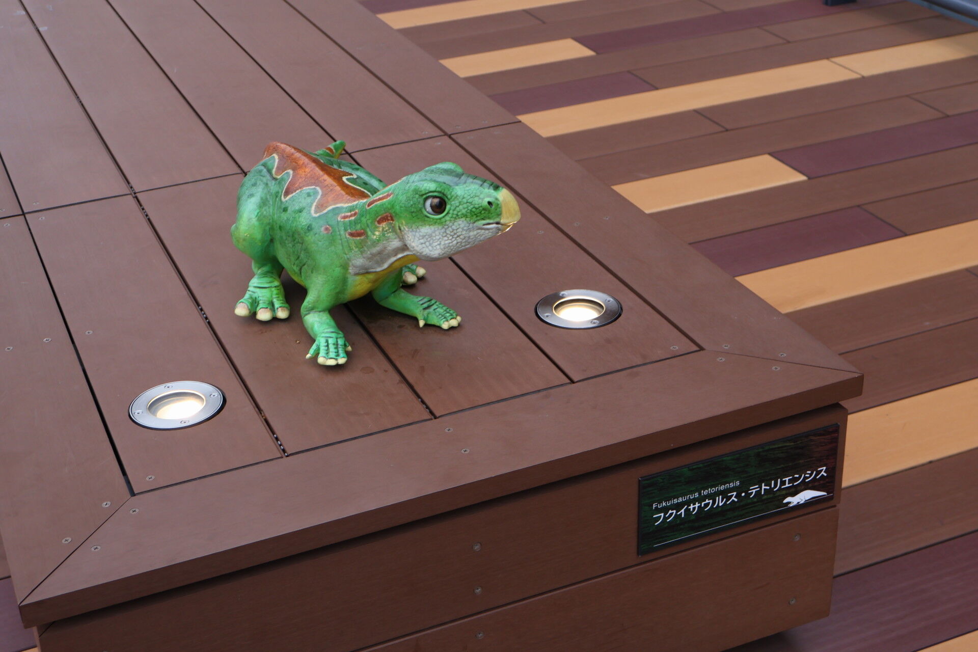 ベンチにも小さい恐竜たち。