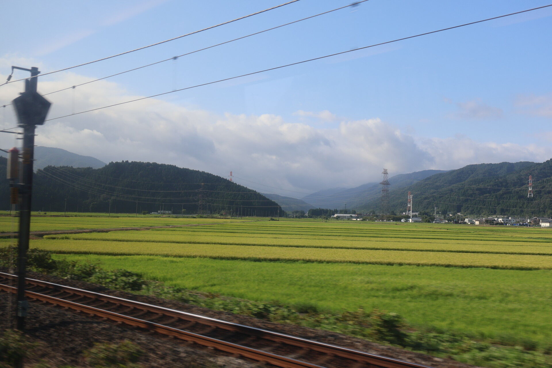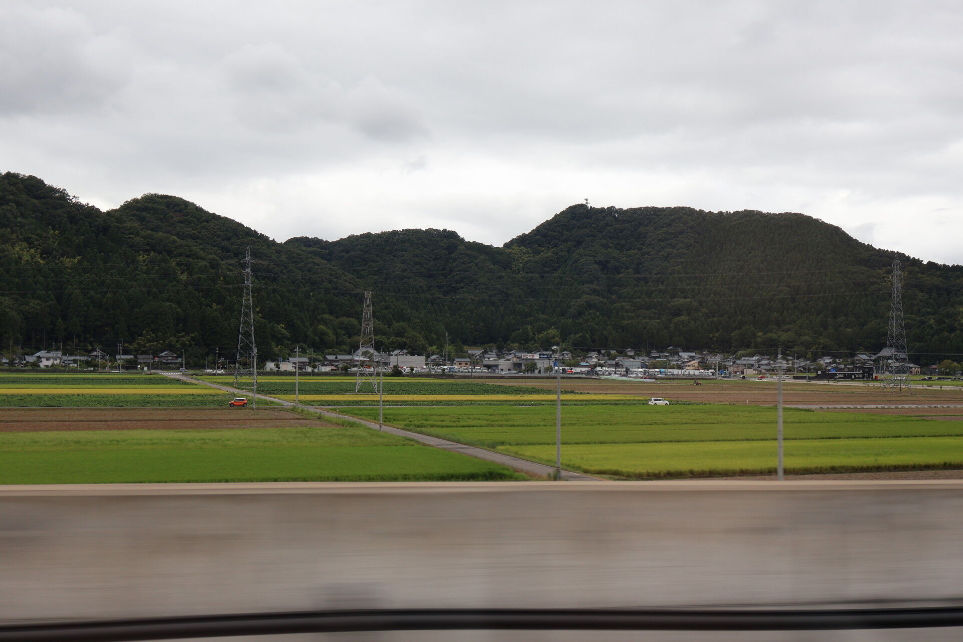 高いところから福井県の田園風景を眺めます。