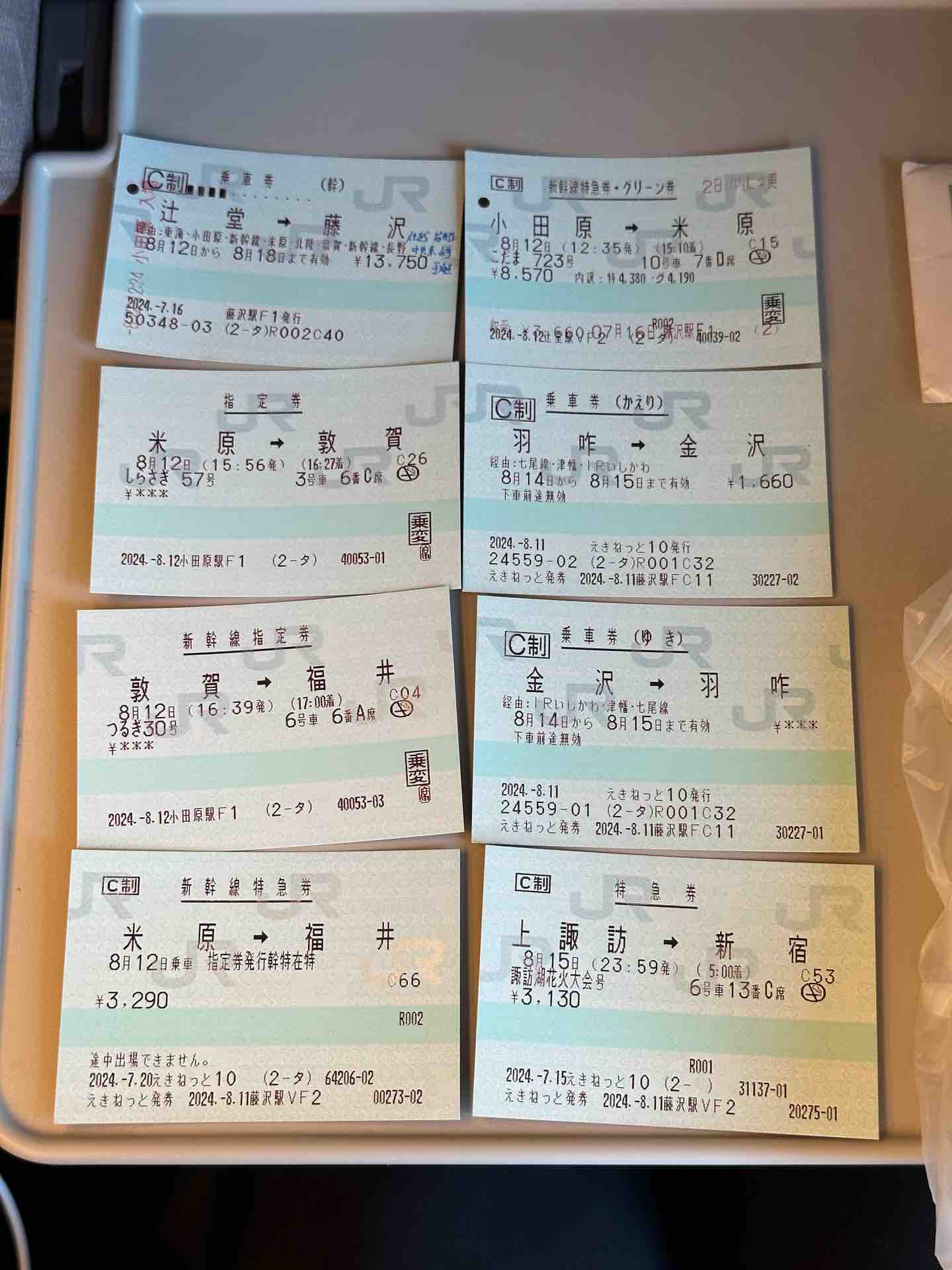 いろいろ考えた結果、福井県の恐竜、石川県のUFO、そして長野県の花火大会という北陸と信州を満喫する旅程となりました。