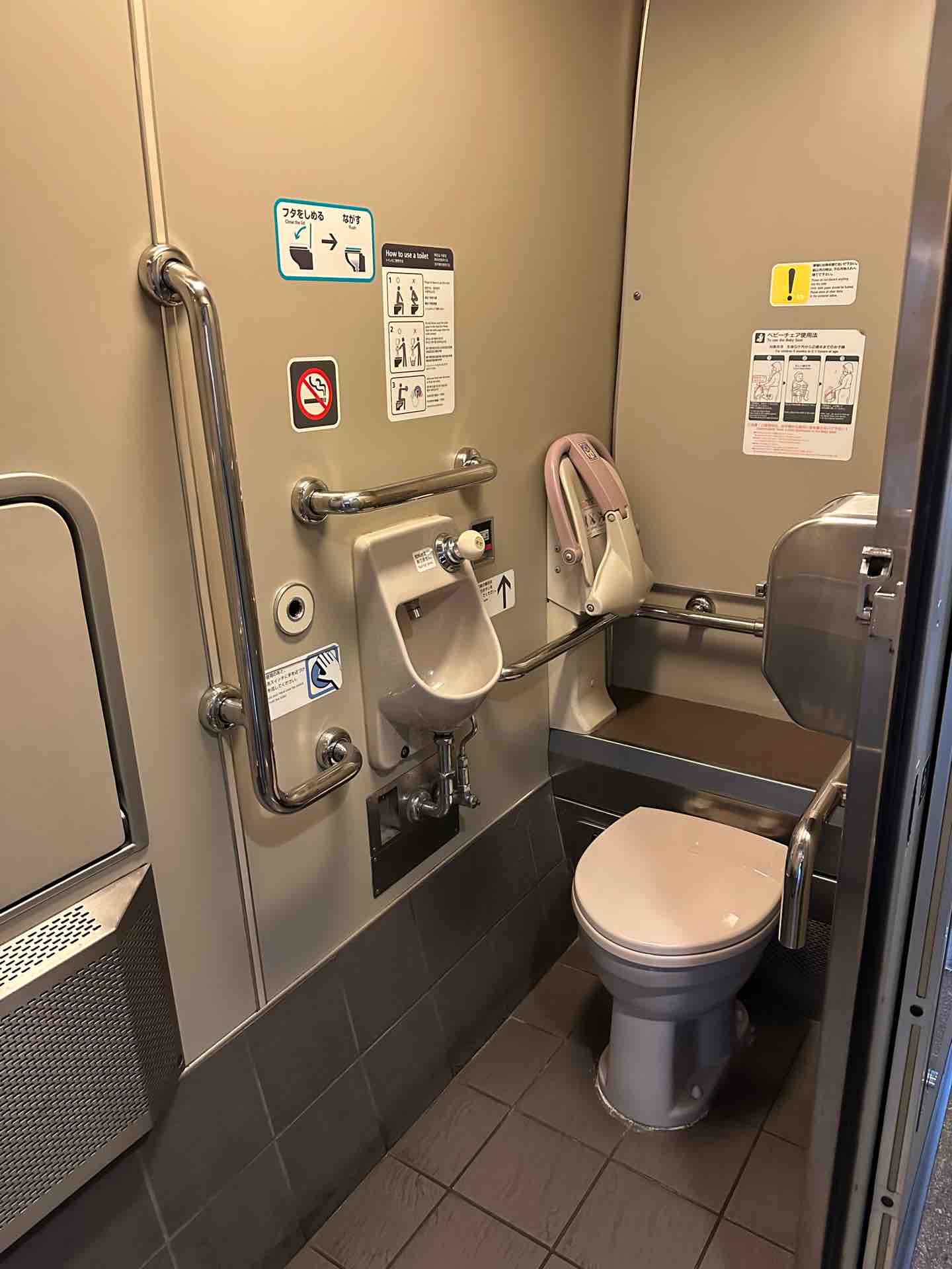 トイレの便座は使い終わると自動的に上がるようになっているようで、便座が男性目線で作られているというコメントをもらってなるほどなぁと思いました。新幹線で大をすることないし、便座を気にしたことなかったし…。