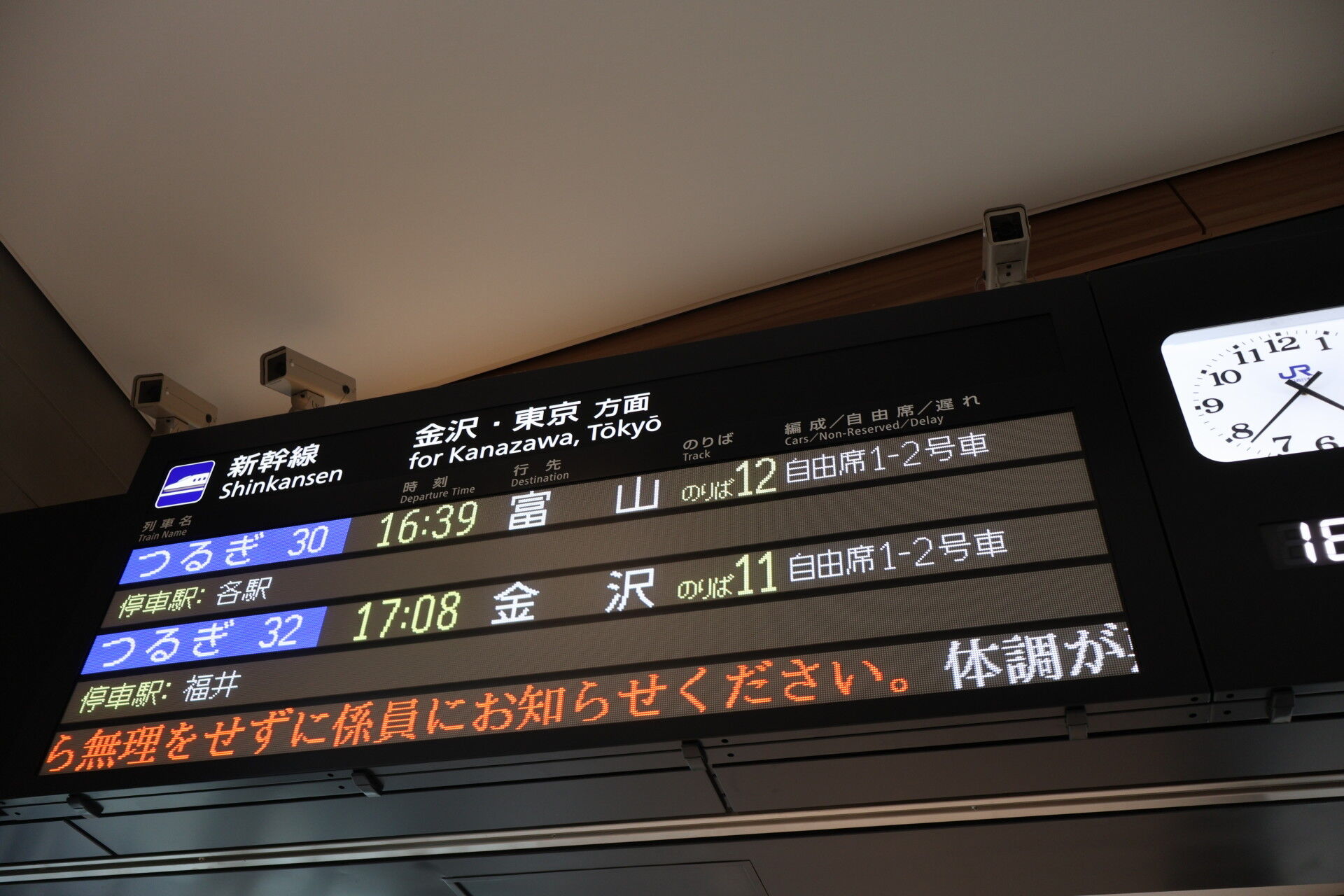 新幹線は12番線から。つるぎ富山行き。