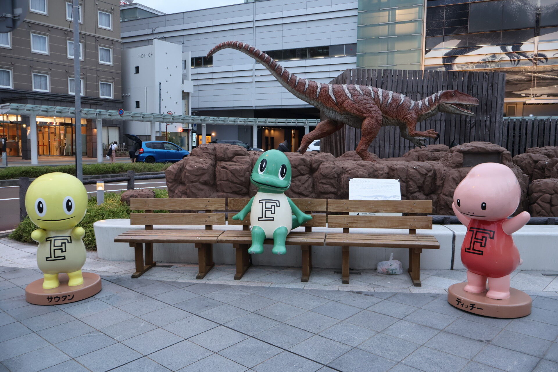 本当に駅前が恐竜オブジェに溢れています。