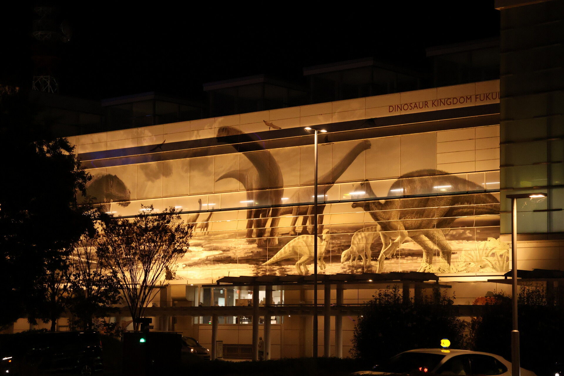 壁画も恐竜。夜の方がぼわっと浮き上がって面白いです。