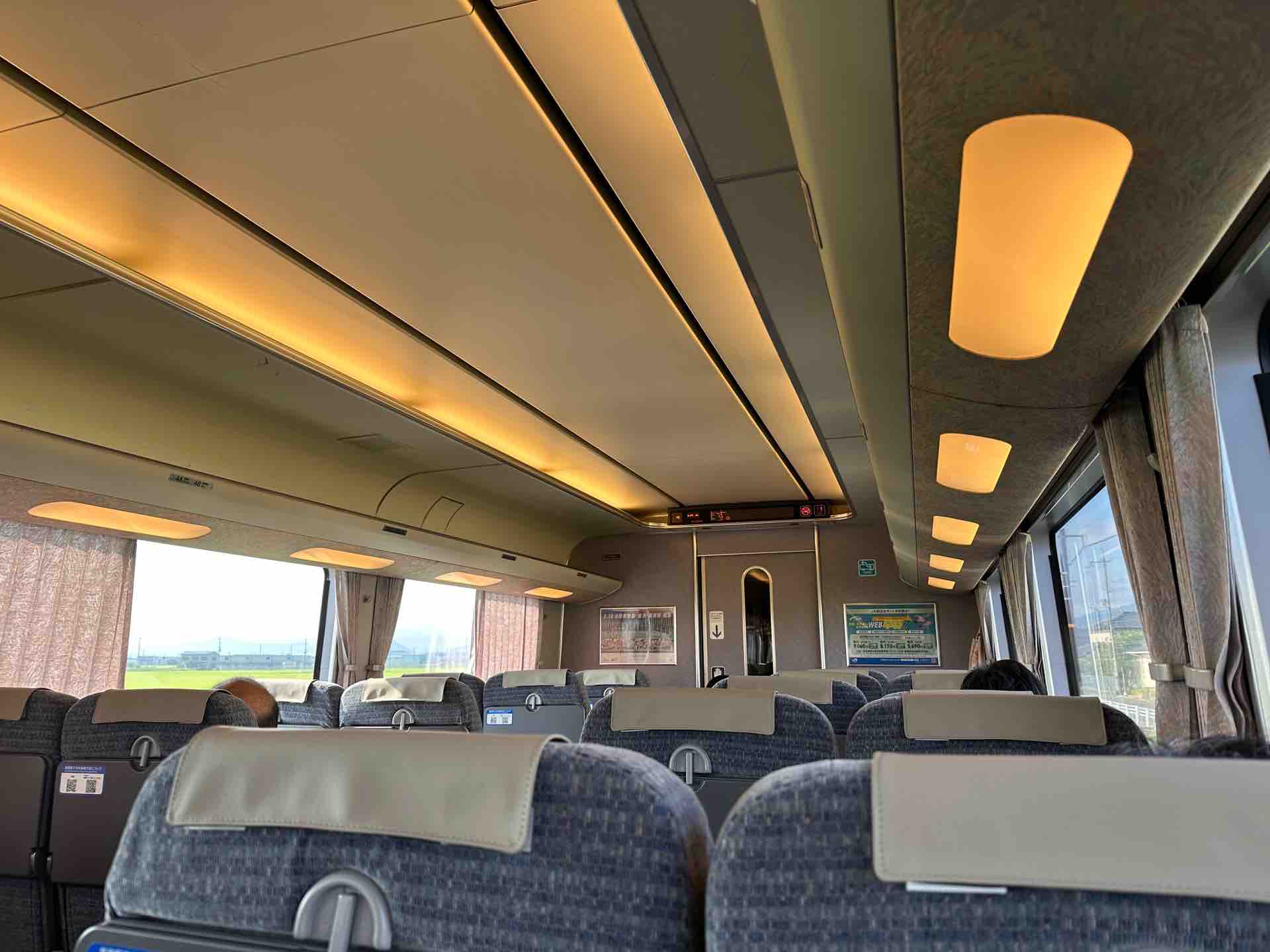 間接照明をふんだんに使った豪華な車内。これもJR第一世代の特徴でしょうか。