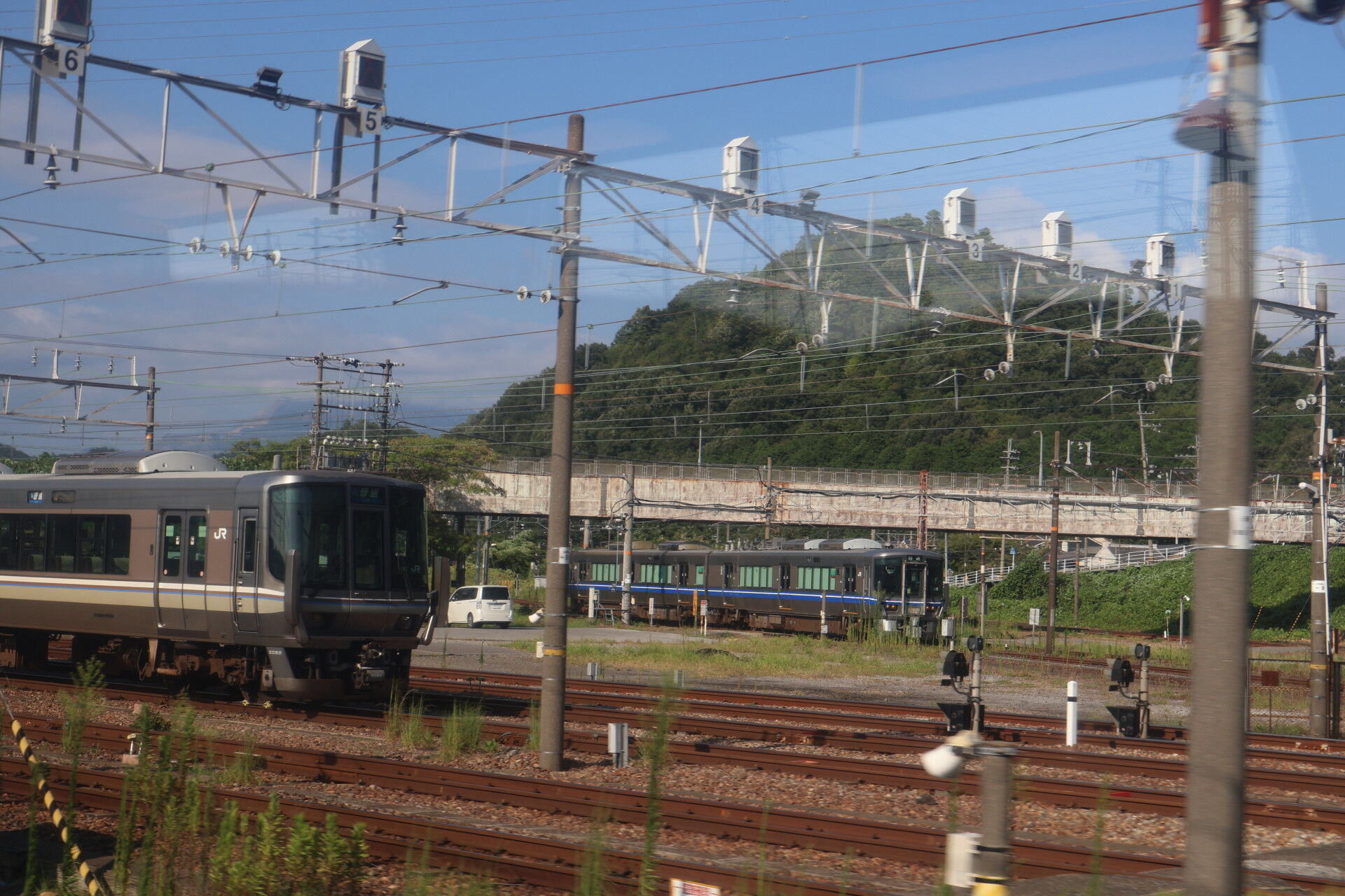 米原を出ると、そこには521系、223系など、西日本の近郊電車が並んでいます。