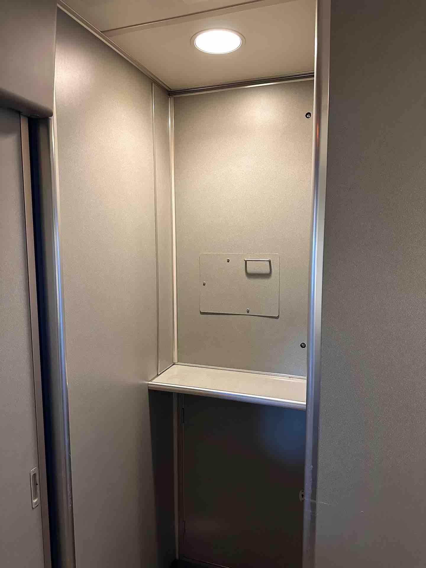 トイレの扉は押して出るタイプ。後の車は引いて出るタイプなので、わりと初期の車なのかも。
