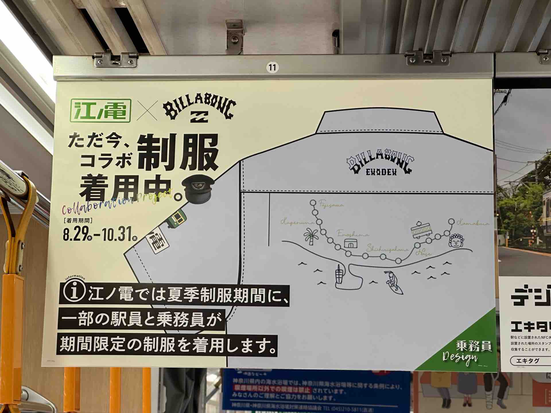 駅員や乗務員の制服もビラボンの服になりました。アロハシャツ着用とか毎年やってましたが、こんどは期間限定シャツなんですね。