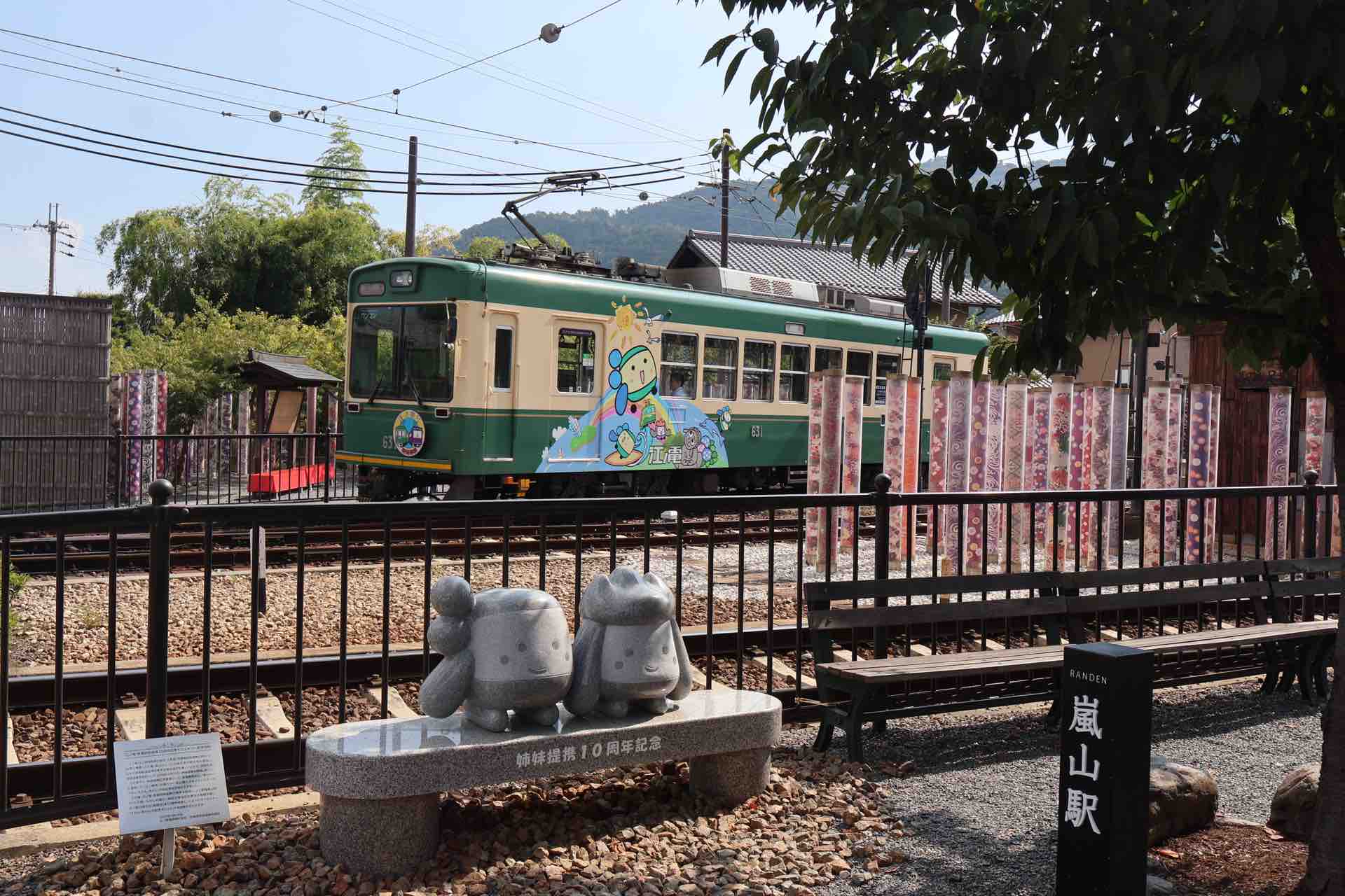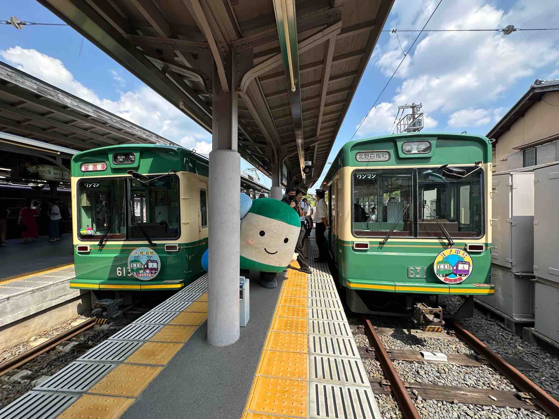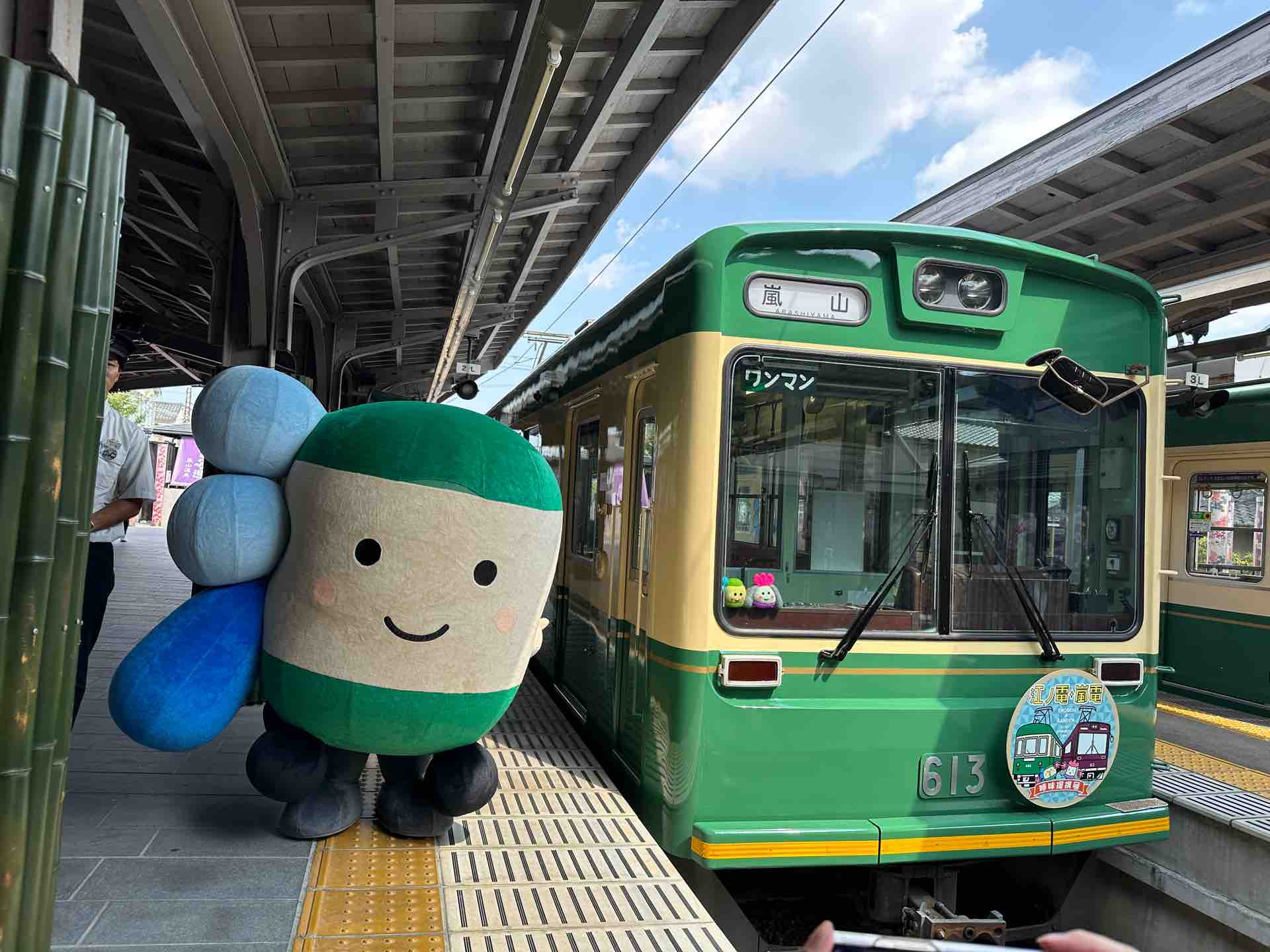 あらんは体調を崩したということで電車には乗車せず、嵐山駅だけ参加しました。