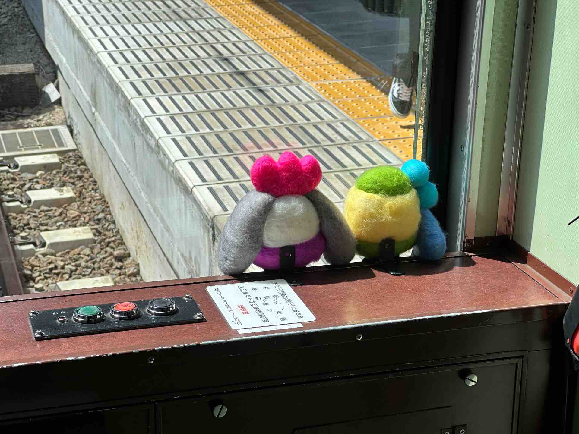 嵐山方運転席にも羊毛フェルトのえのん・あらんが乗りました!
