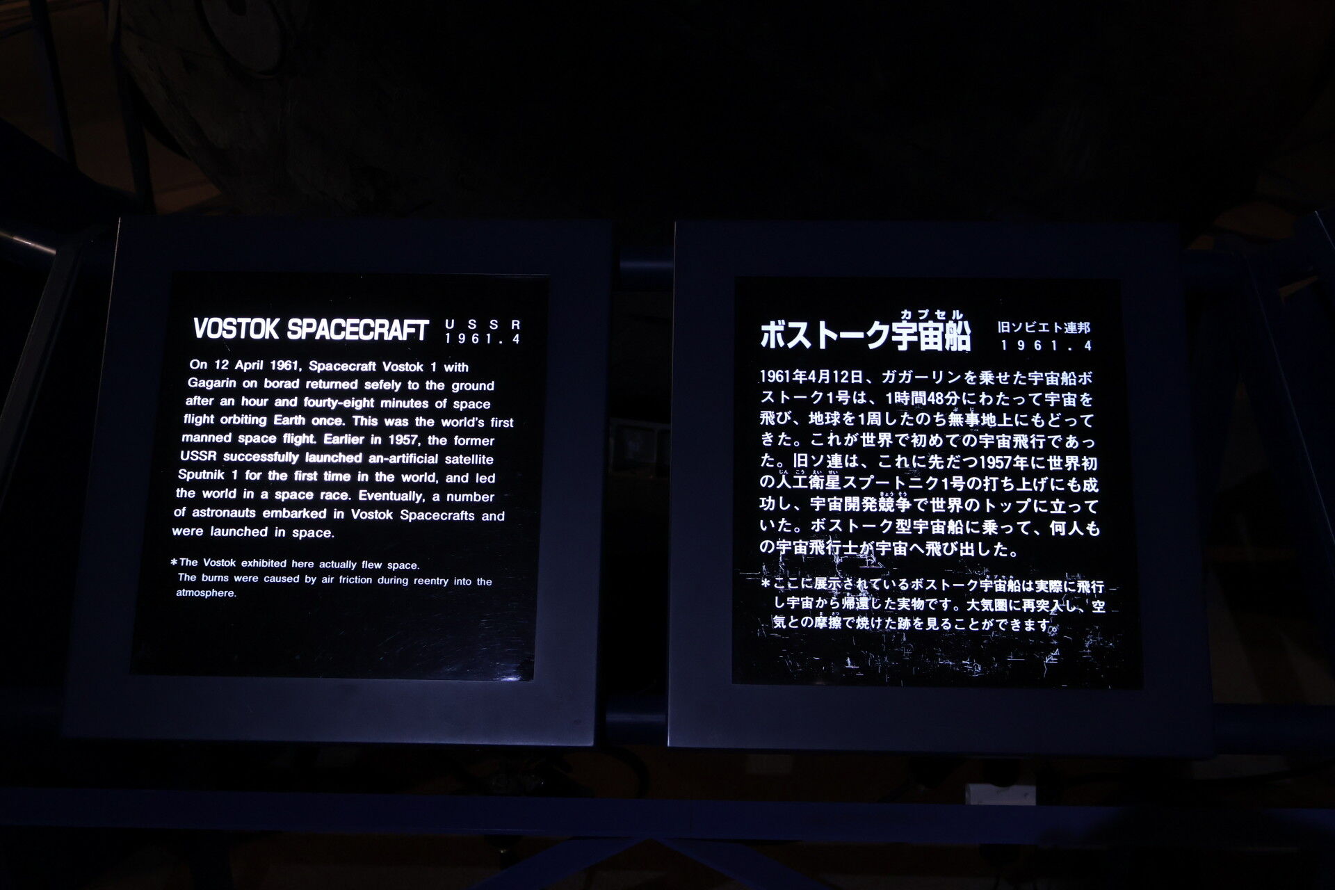 地球は青かった、で有名なガガーリンが宇宙に行った、ソ連が誇る人類初の有人宇宙飛行船です。