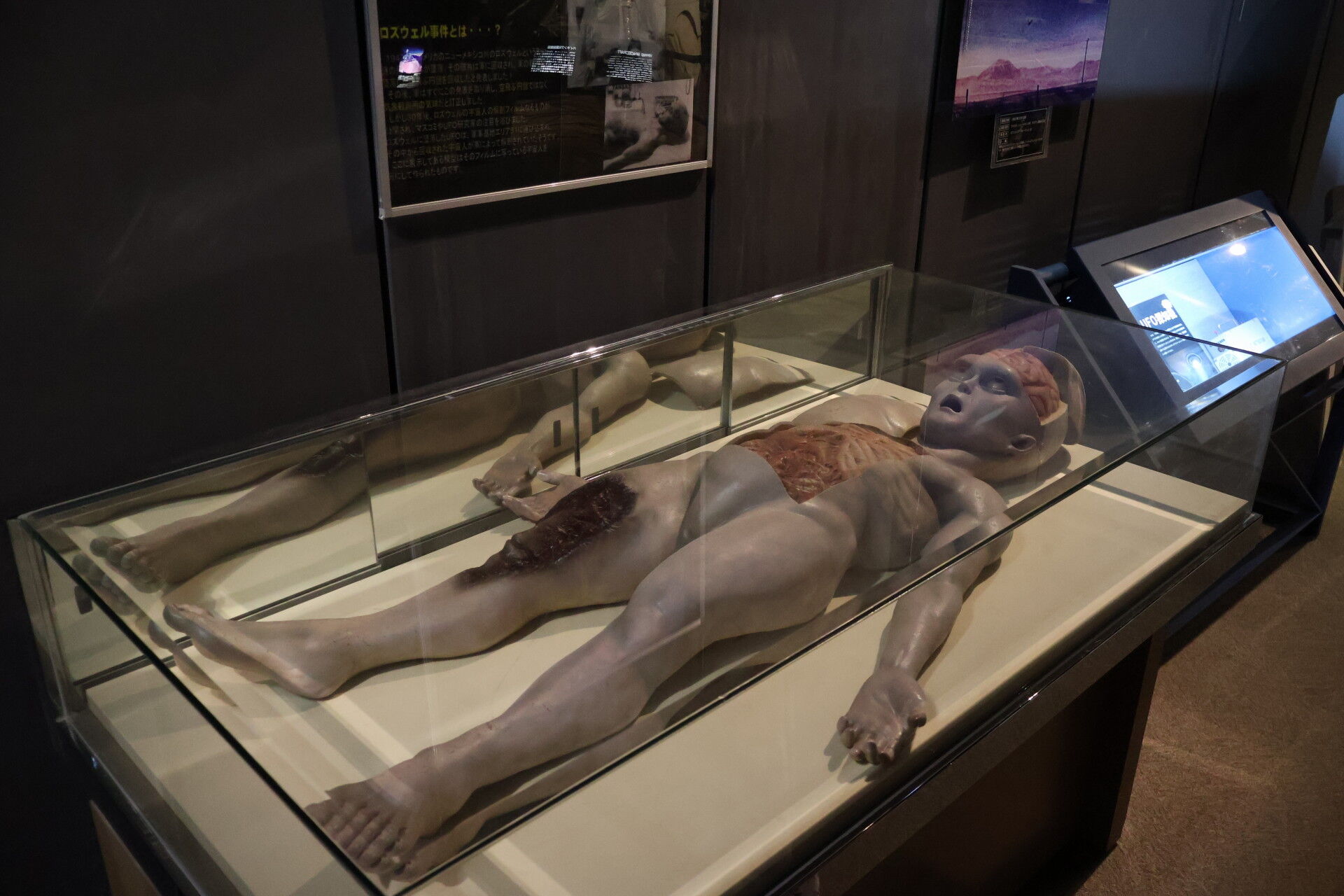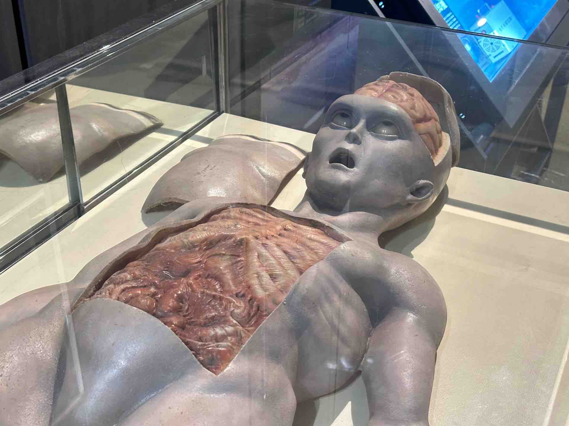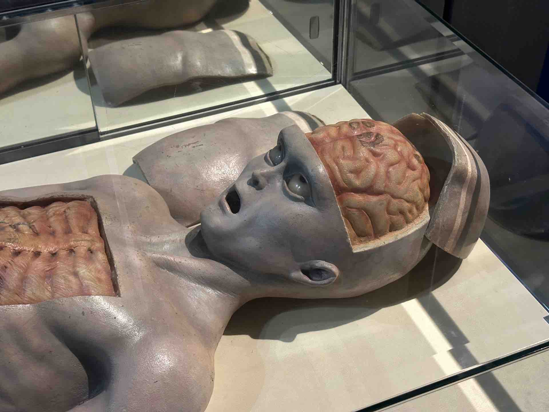 脳みそが大きいグレイを解剖している図。