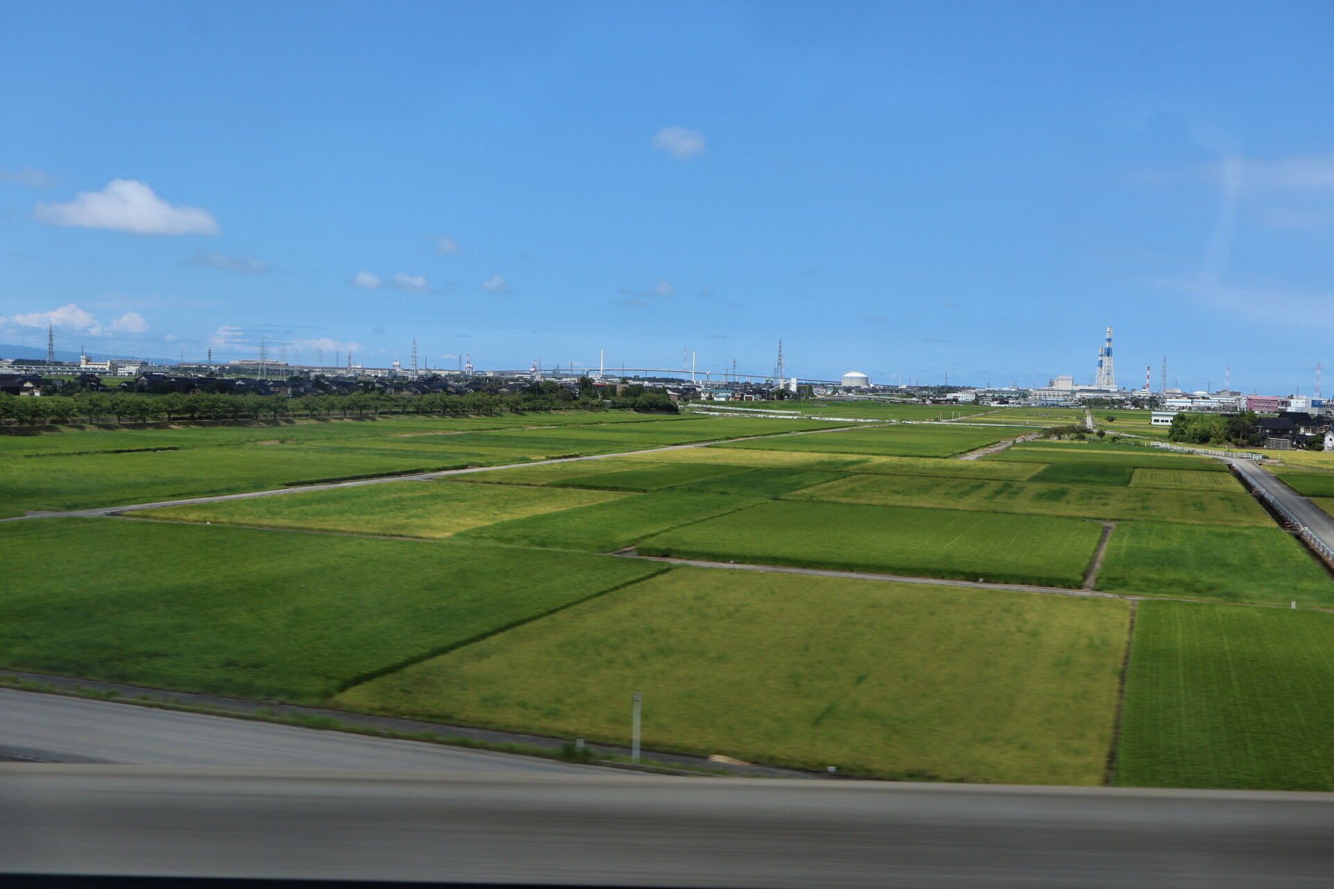 福井の田んぼは色づき始めていましたがこちらはまだ青々としています。
