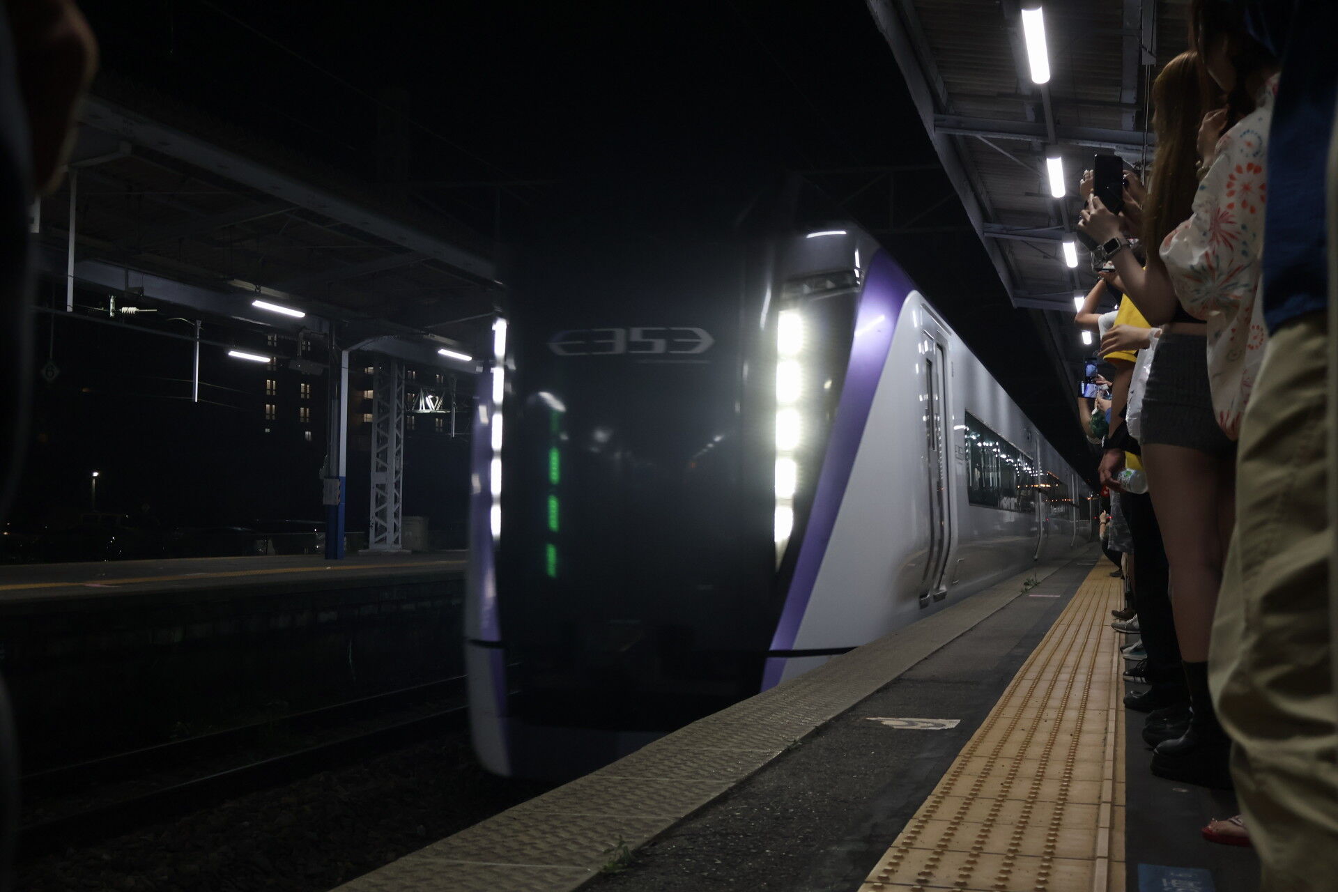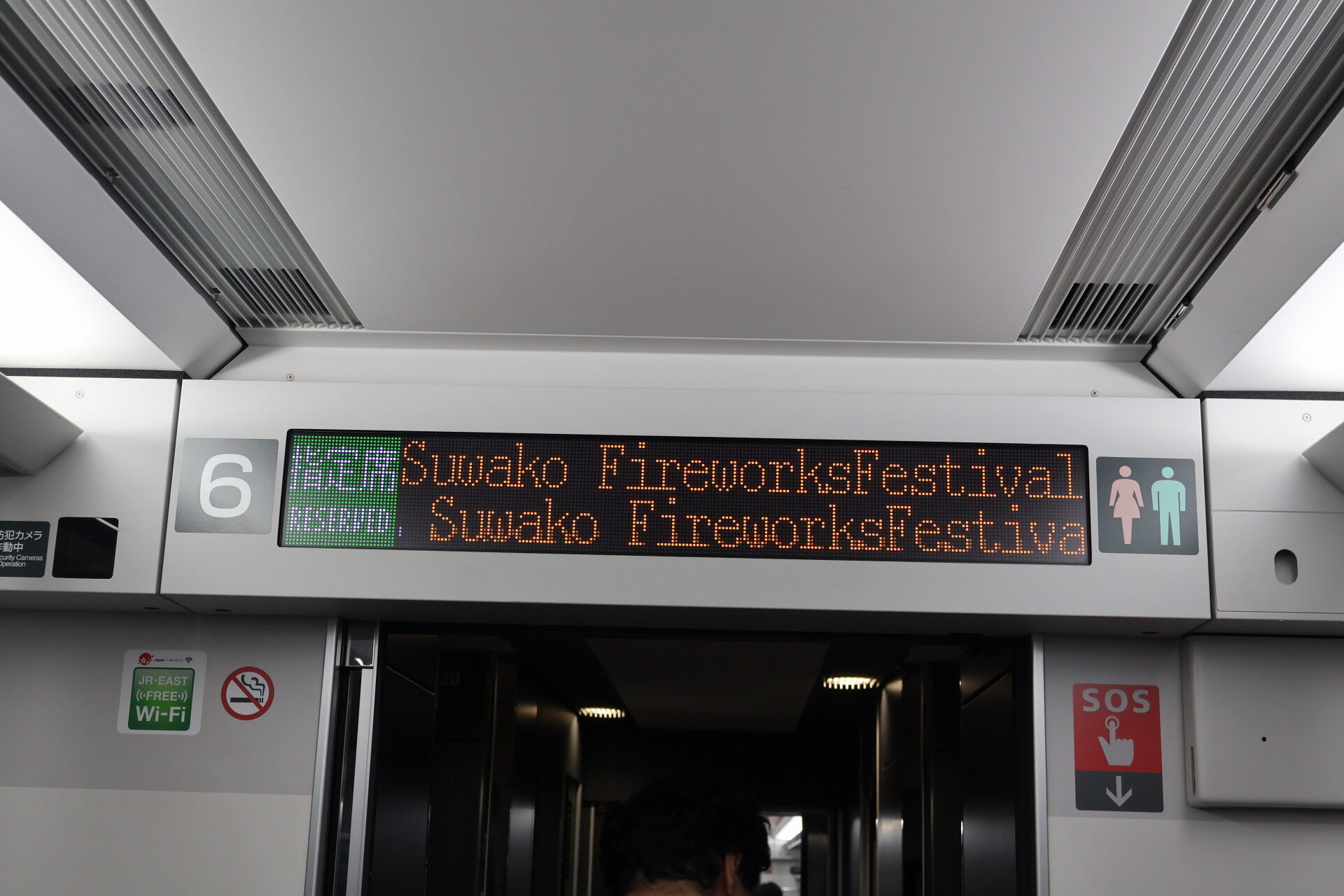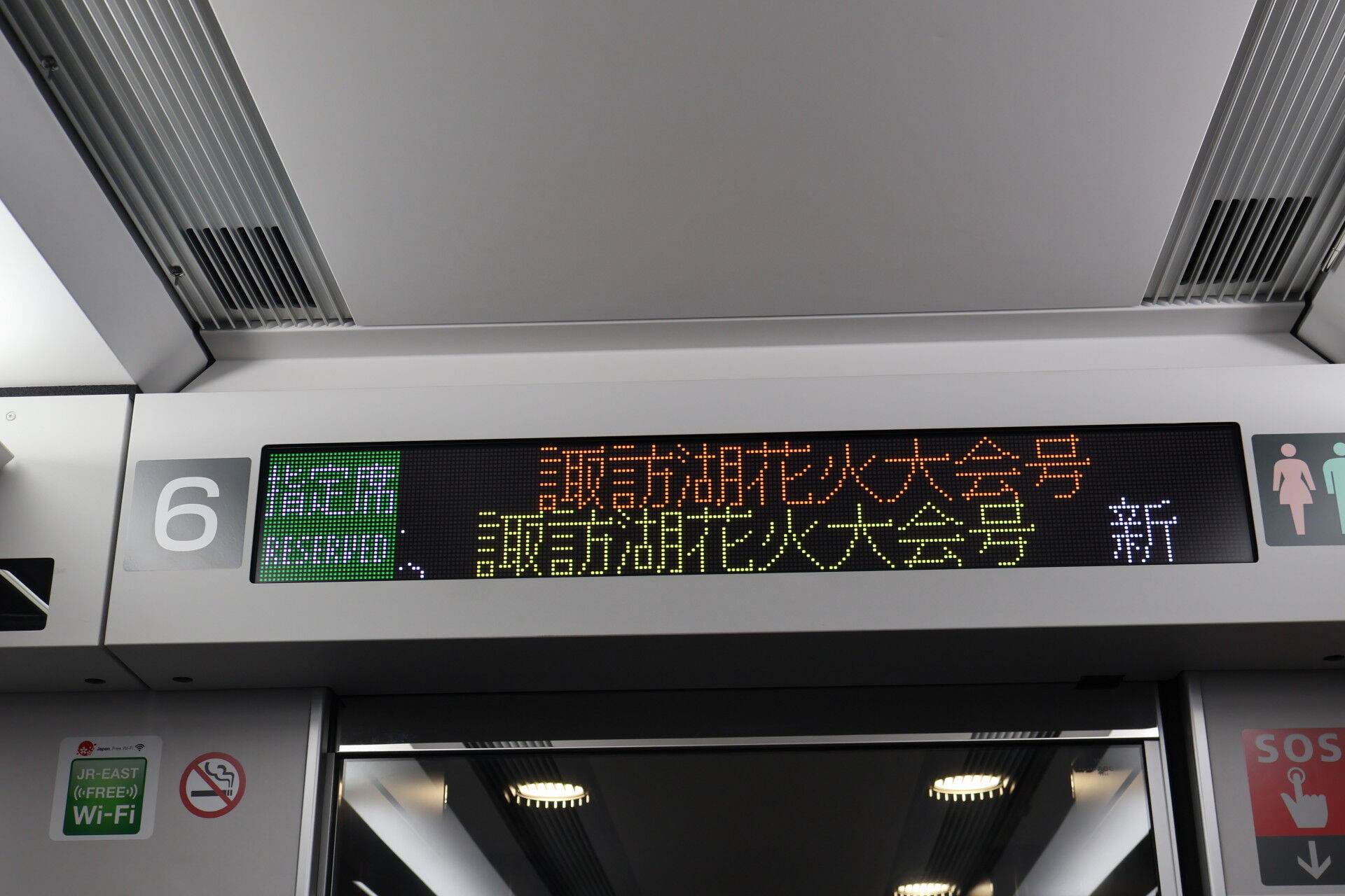 私たちが乗るのはこの臨時特急諏訪湖花火大会号です。