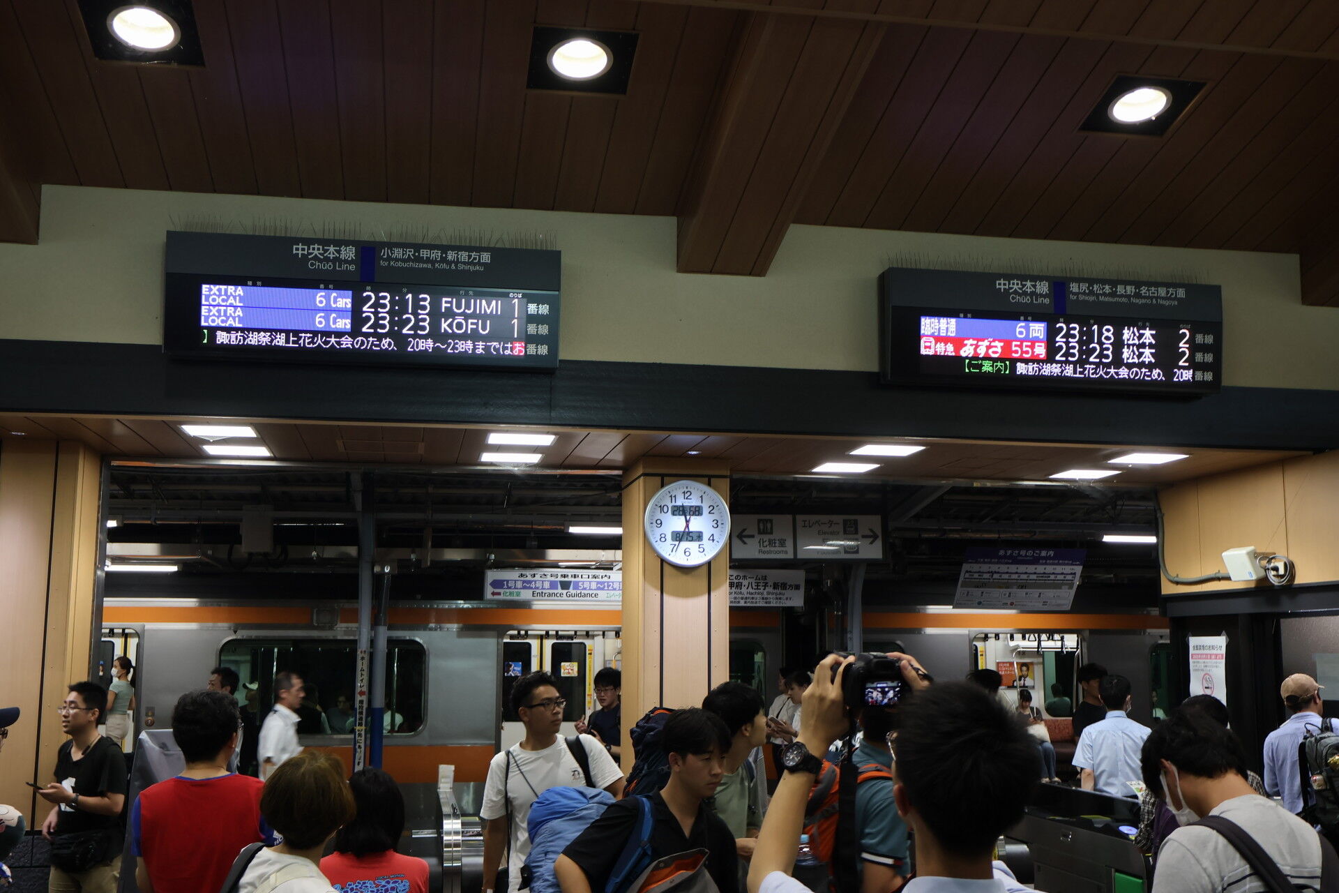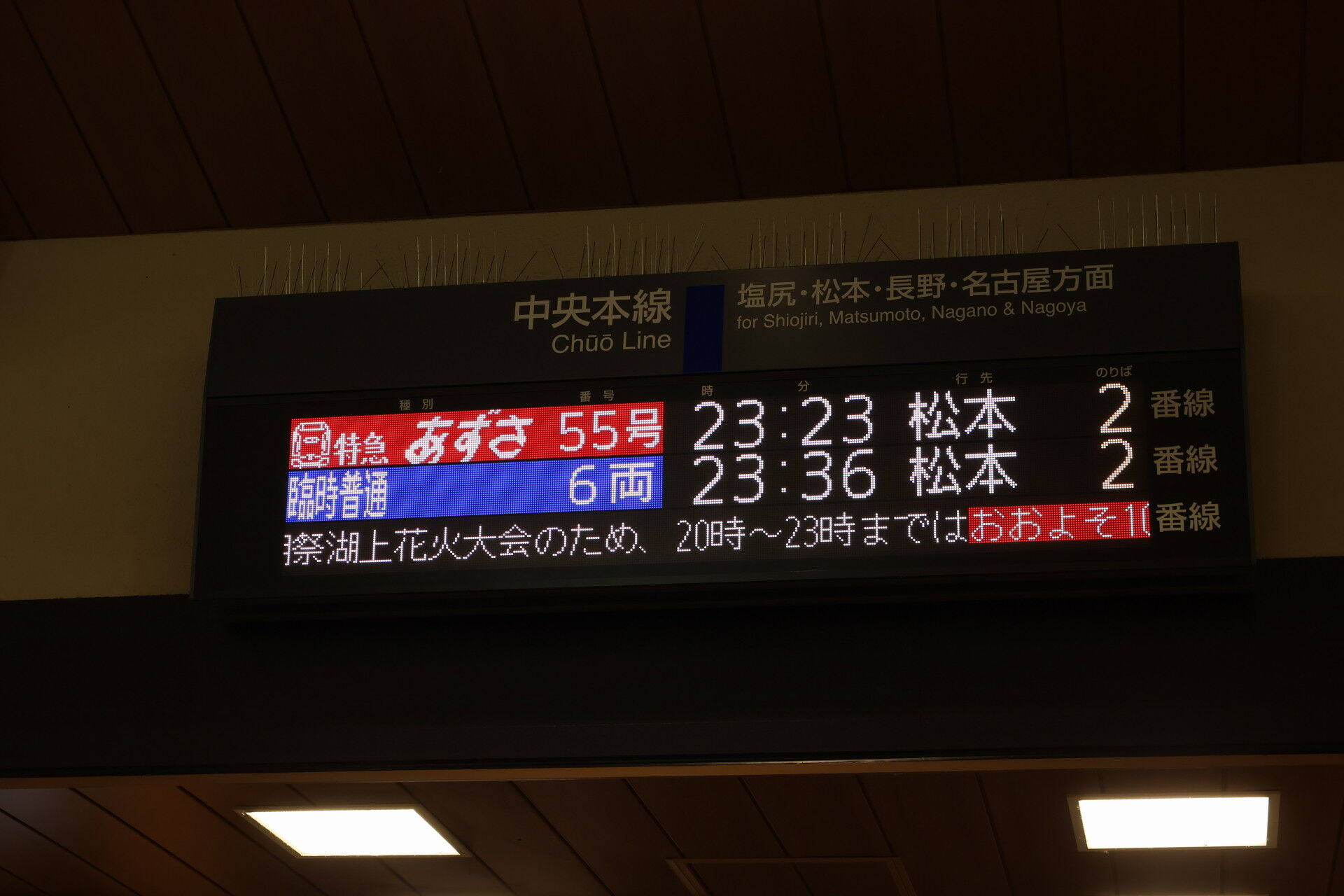 今回は同行者の仕事の関係で神奈川への朝帰りがマストだったこともあってこの列車を選びましたが、できれば甲府で宿をとったほうが幸せかもしれないです…。