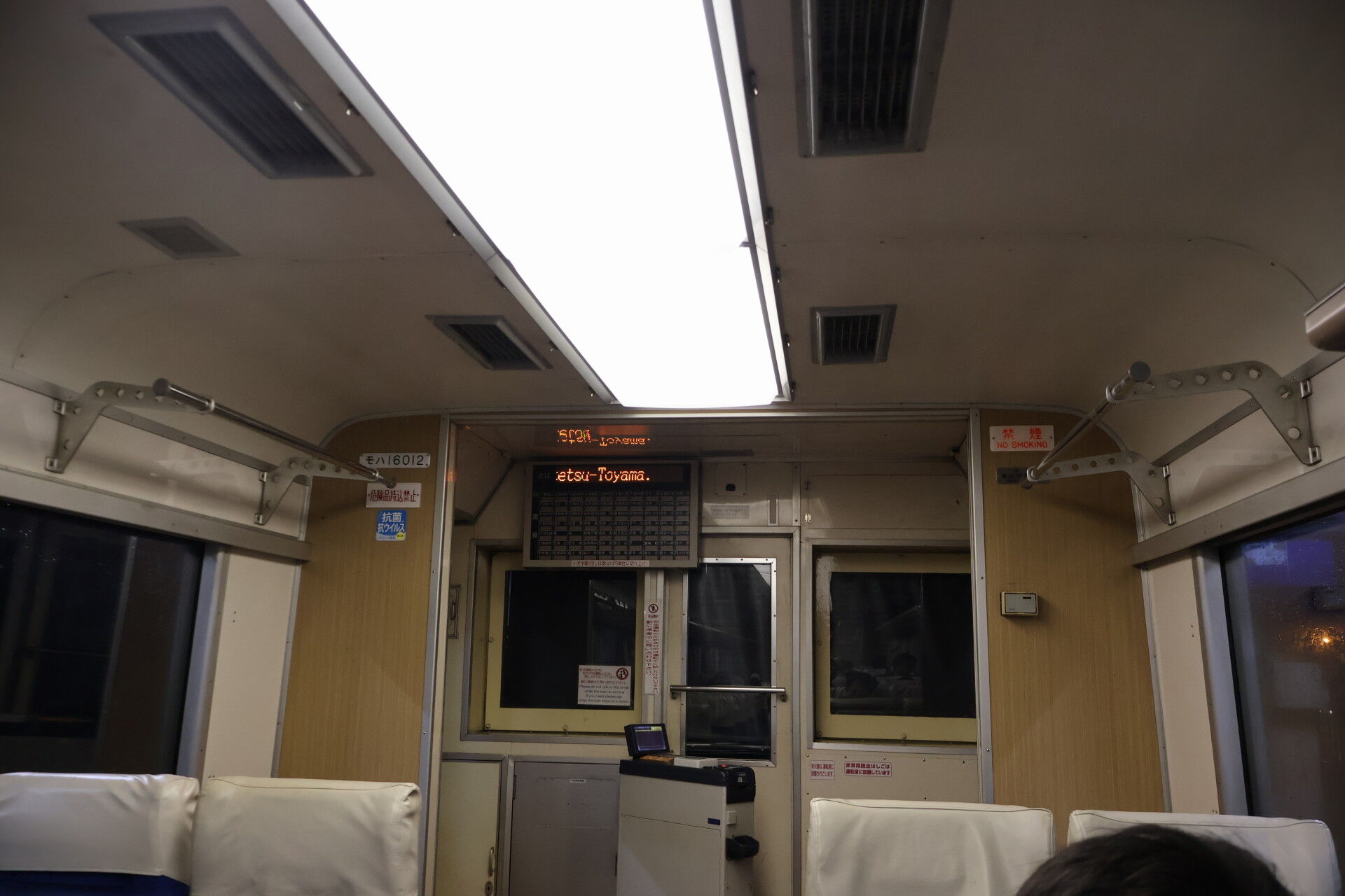 立山発とは異なり、上石というところで折り返してきたローカル列車なので、静かな車内です。