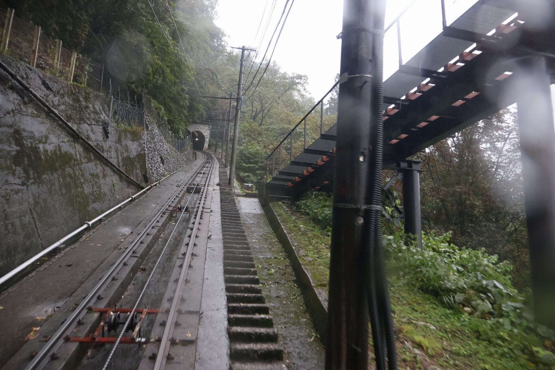 急斜面に線路を敷くとずり落ちてしまうというのが有名な話ですが、この辺りはどうやって対策しているのでしょう。ガッチリ押さえ込んでいるのだとは思うのですが。