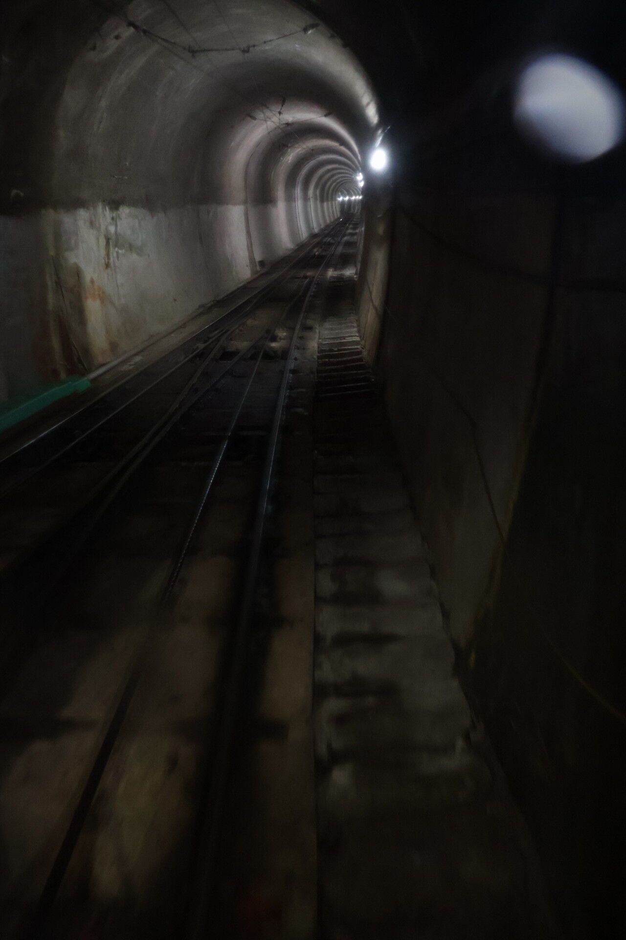 雨粒なのかトンネルの地下水なのかわかりませんが窓ガラスからかろうじて見える外の景色を楽しみます。