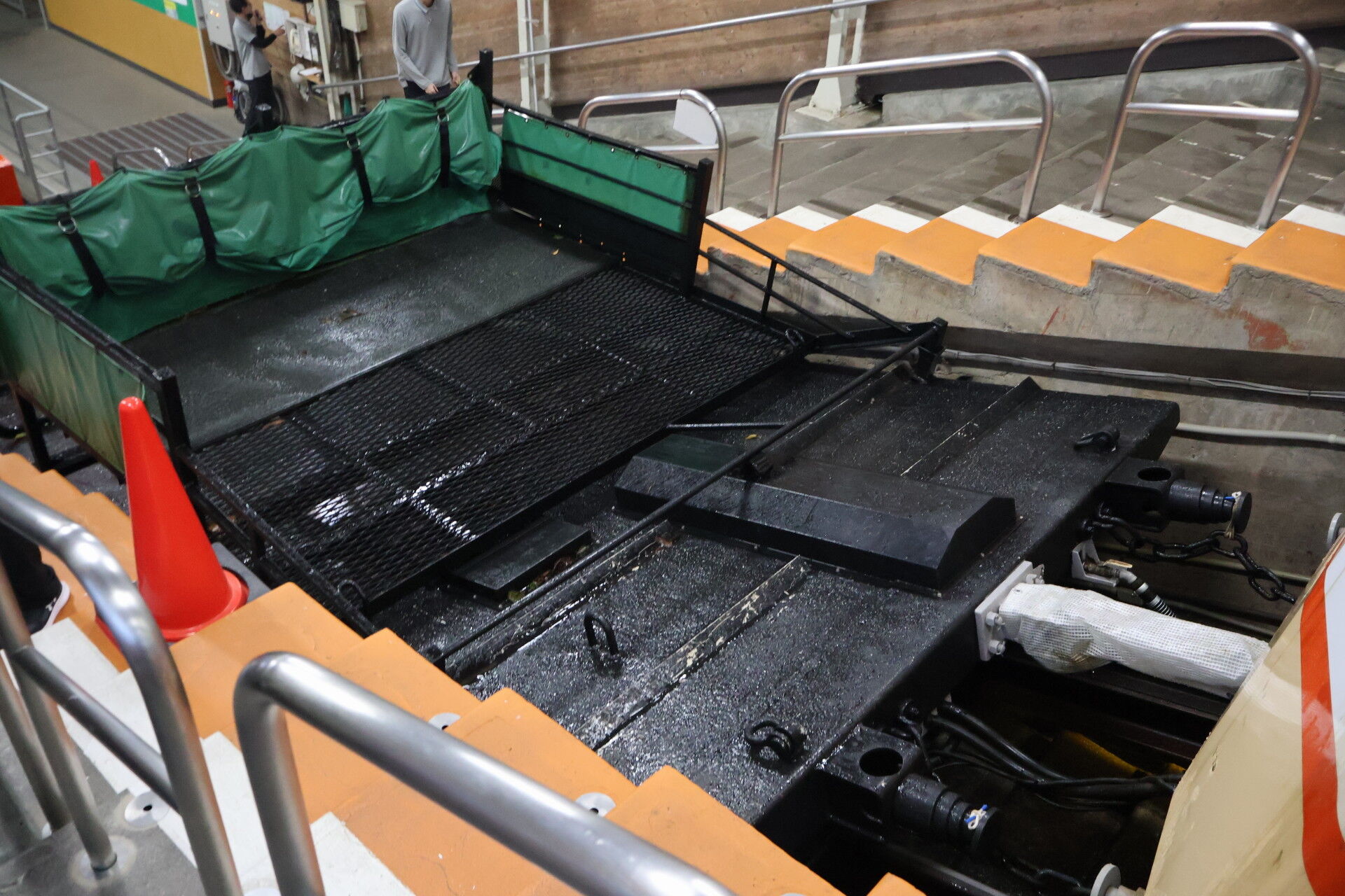 整備工場へはトレーラーに積載して輸送しますが、室堂駅構内であればバッテリーで走行できるので、引き出したのでしょうか。