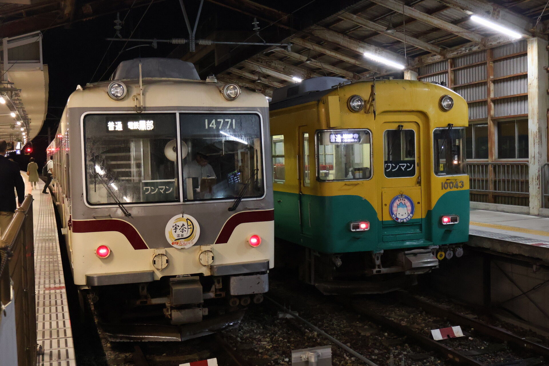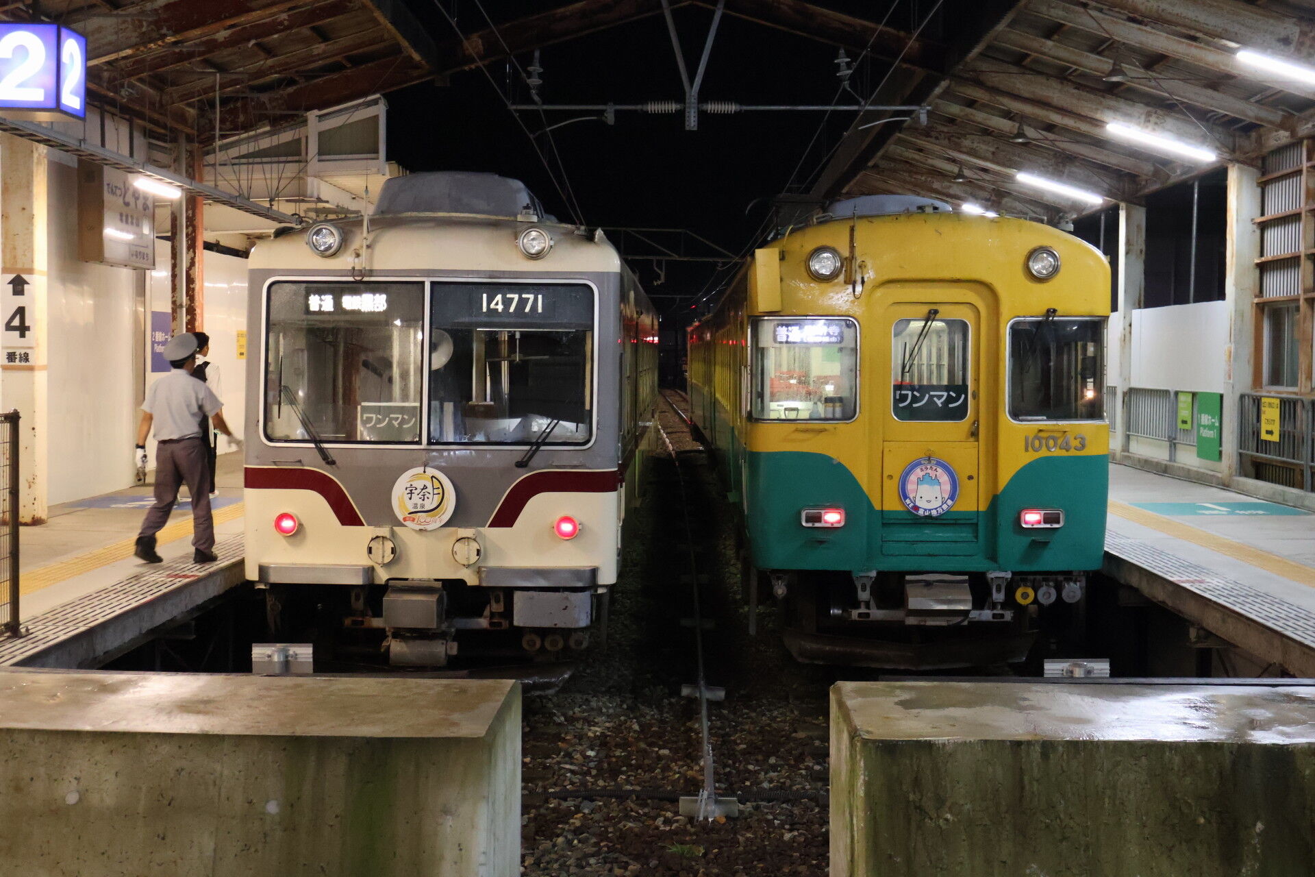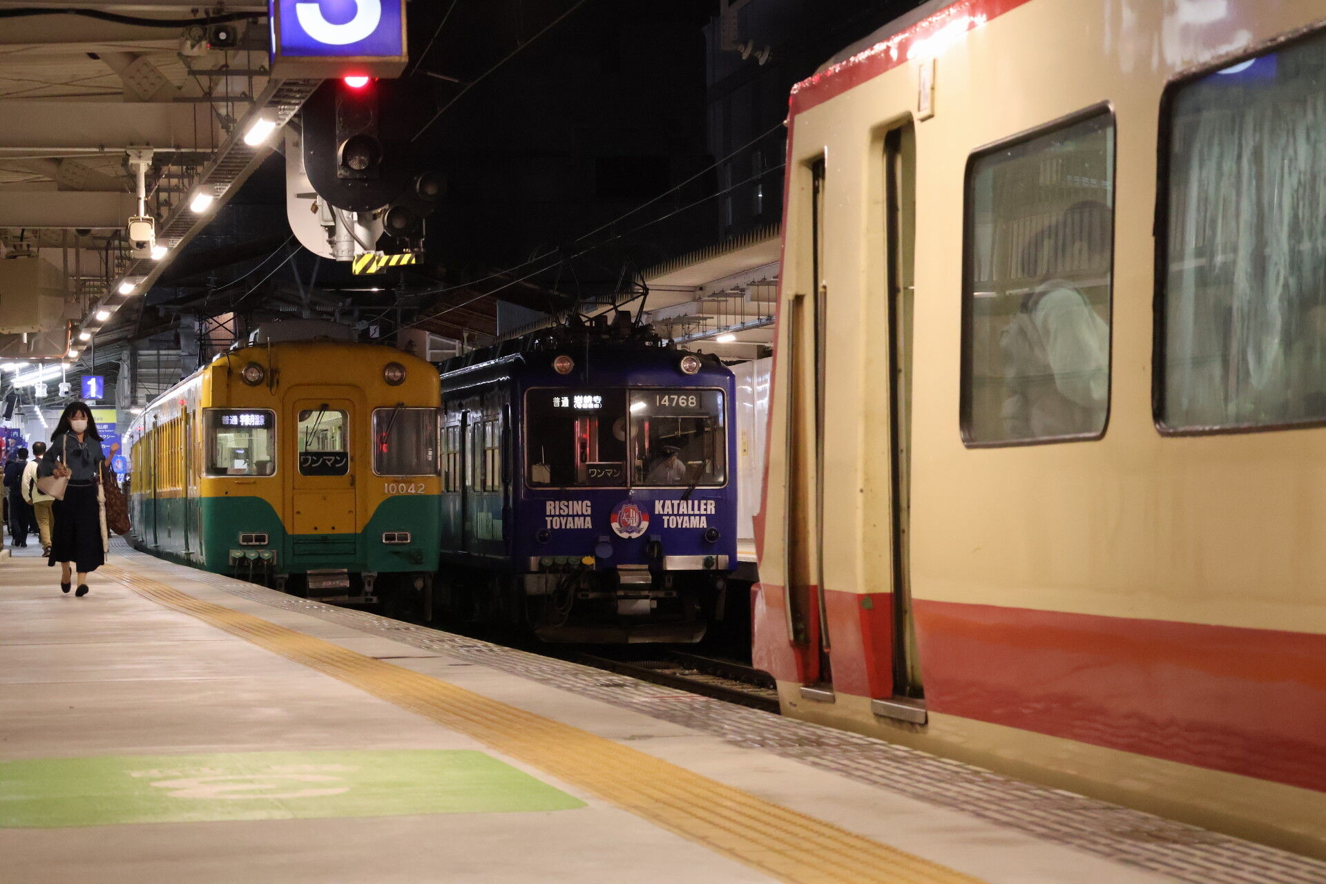 奥にいるのは左が10030系(京阪3000系)、右が14760系です。