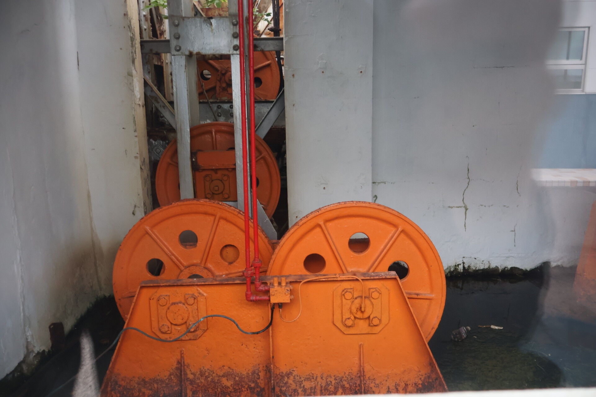 貨車の積み下ろしの際、重量変化で船の傾きを抑えるためにバラスト水を注水していた操作室です。