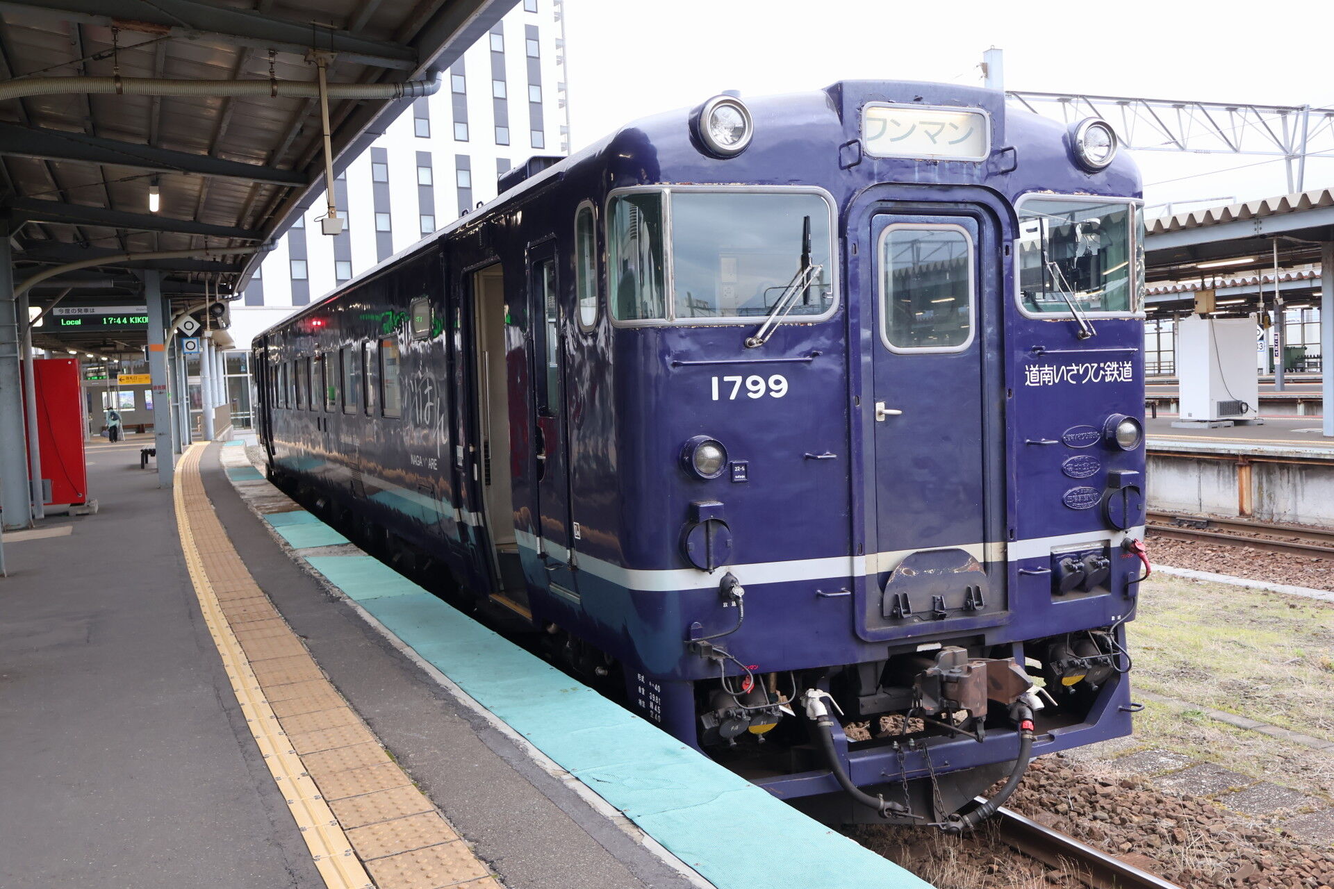 バスが来たのでこれに乗って、七重浜の方へ向かいます。