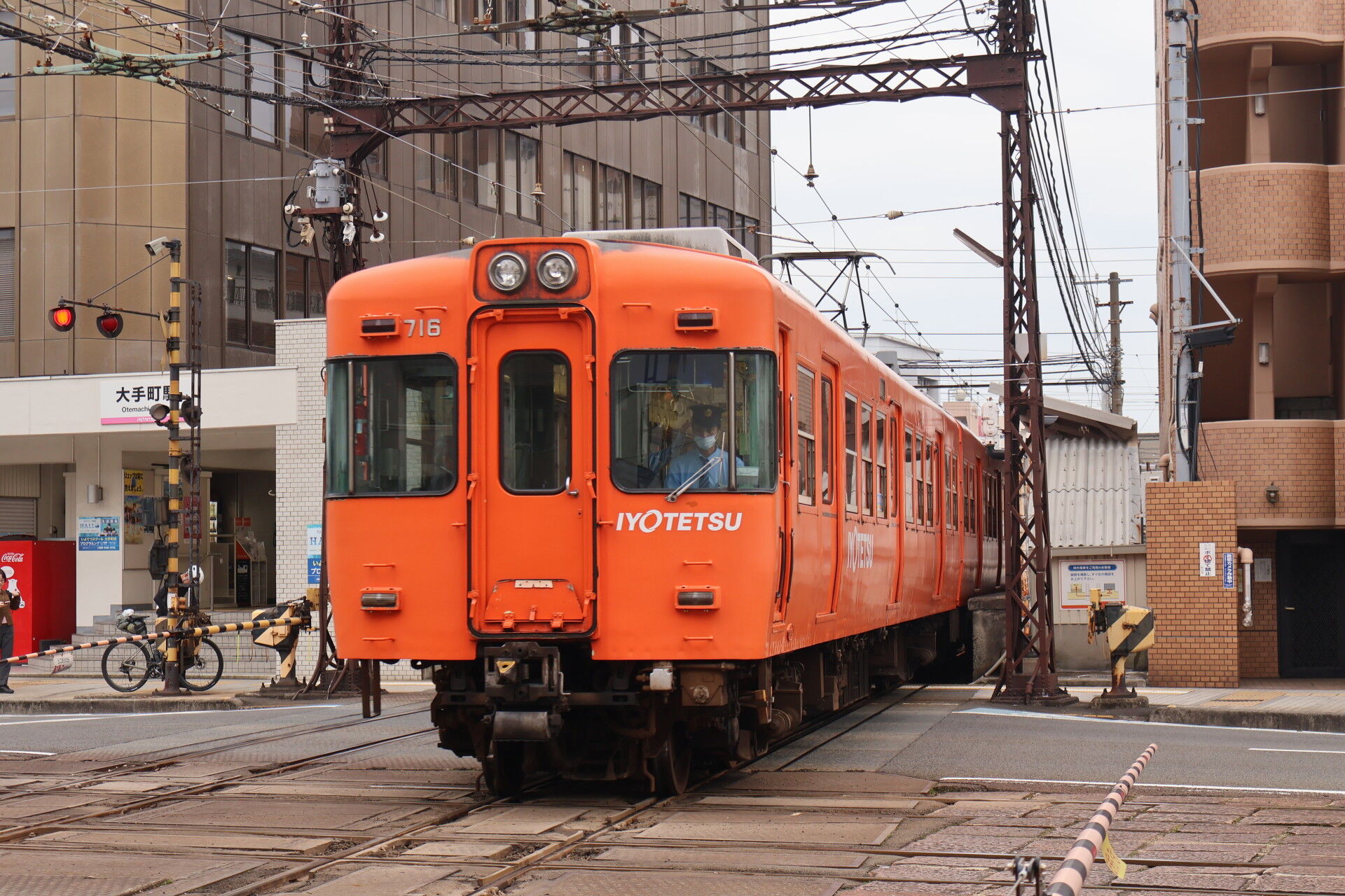 大手町駅のホームは伊予鉄の自社ビルに張り付いています。昔の東横横浜みたいですね。