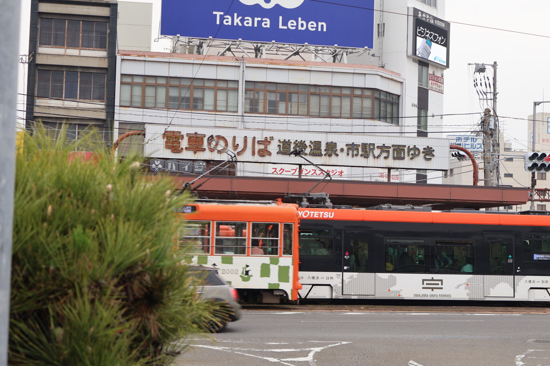 直通している横河原線、高浜線、そして郡中線が分岐しています。