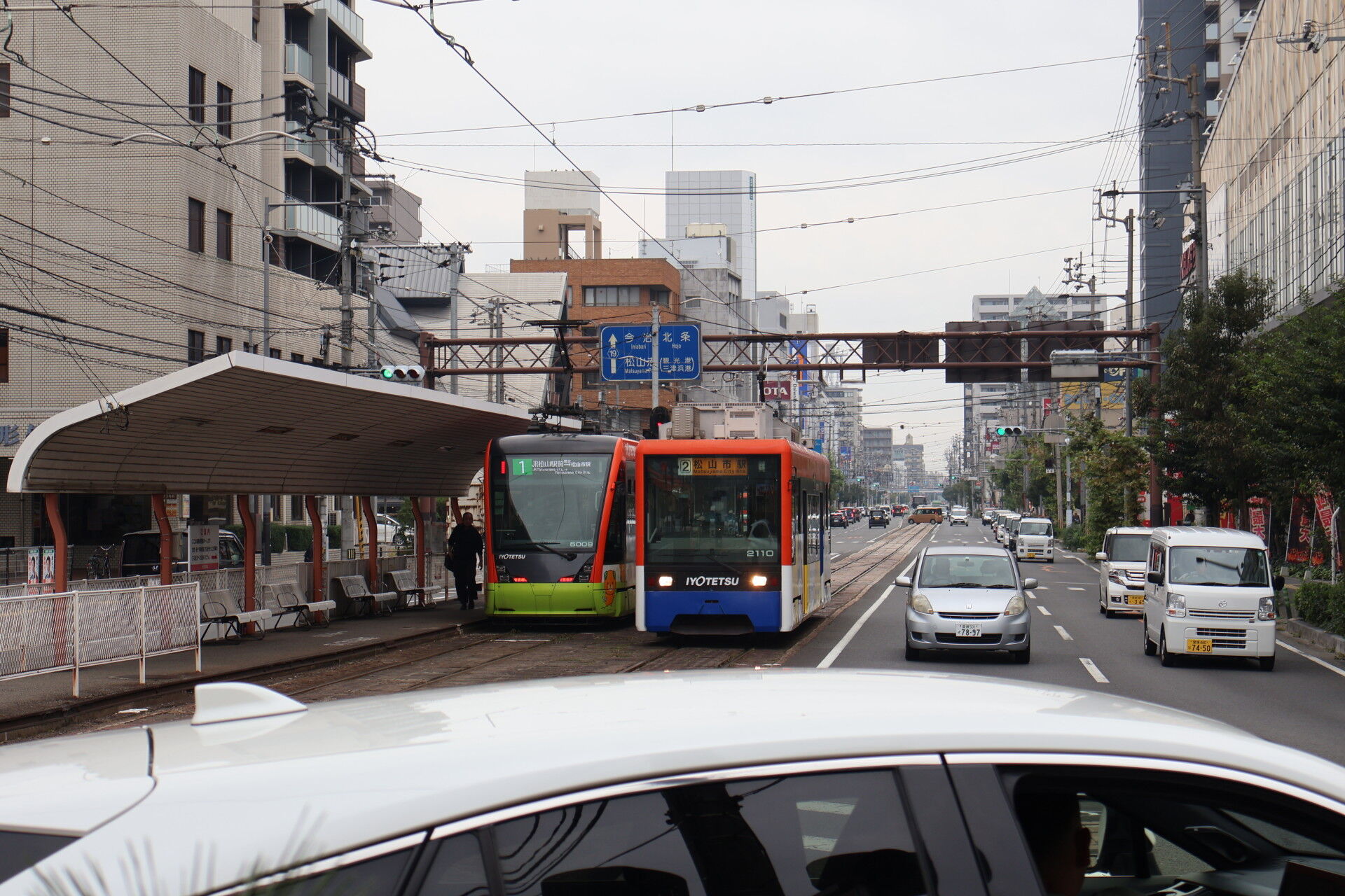その間に環状線の松山市駅行きがバンバンきます。