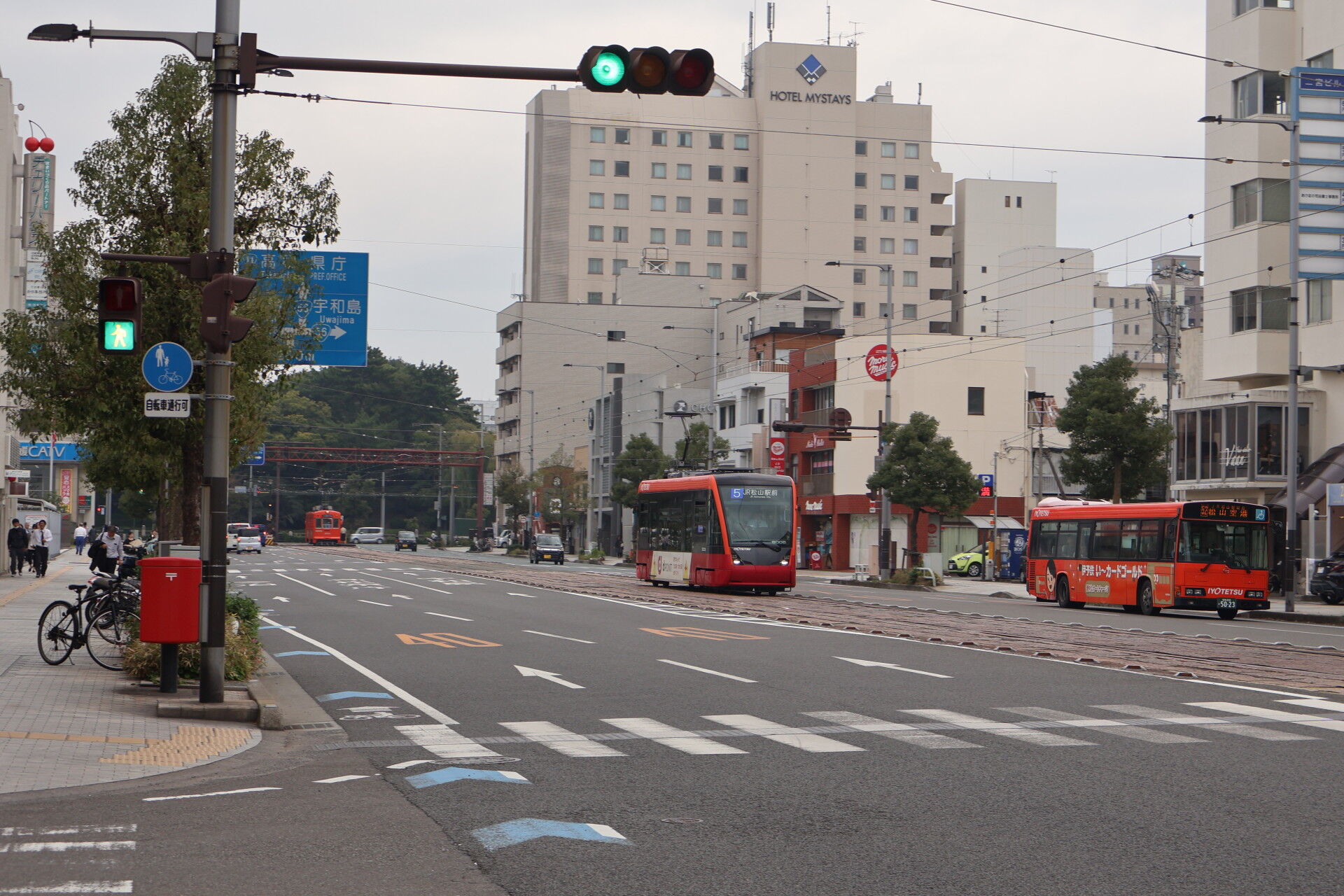 ここから松山城下を走り、松山市駅へ。