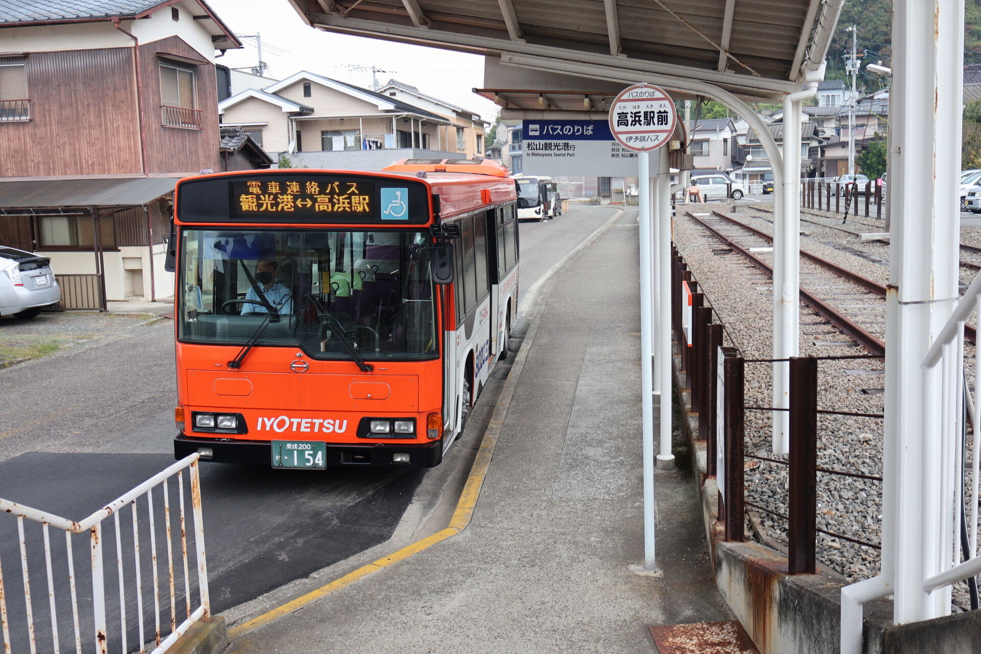 ホームのすぐ下に、松山観光港行きのシャトルバスが出ています。