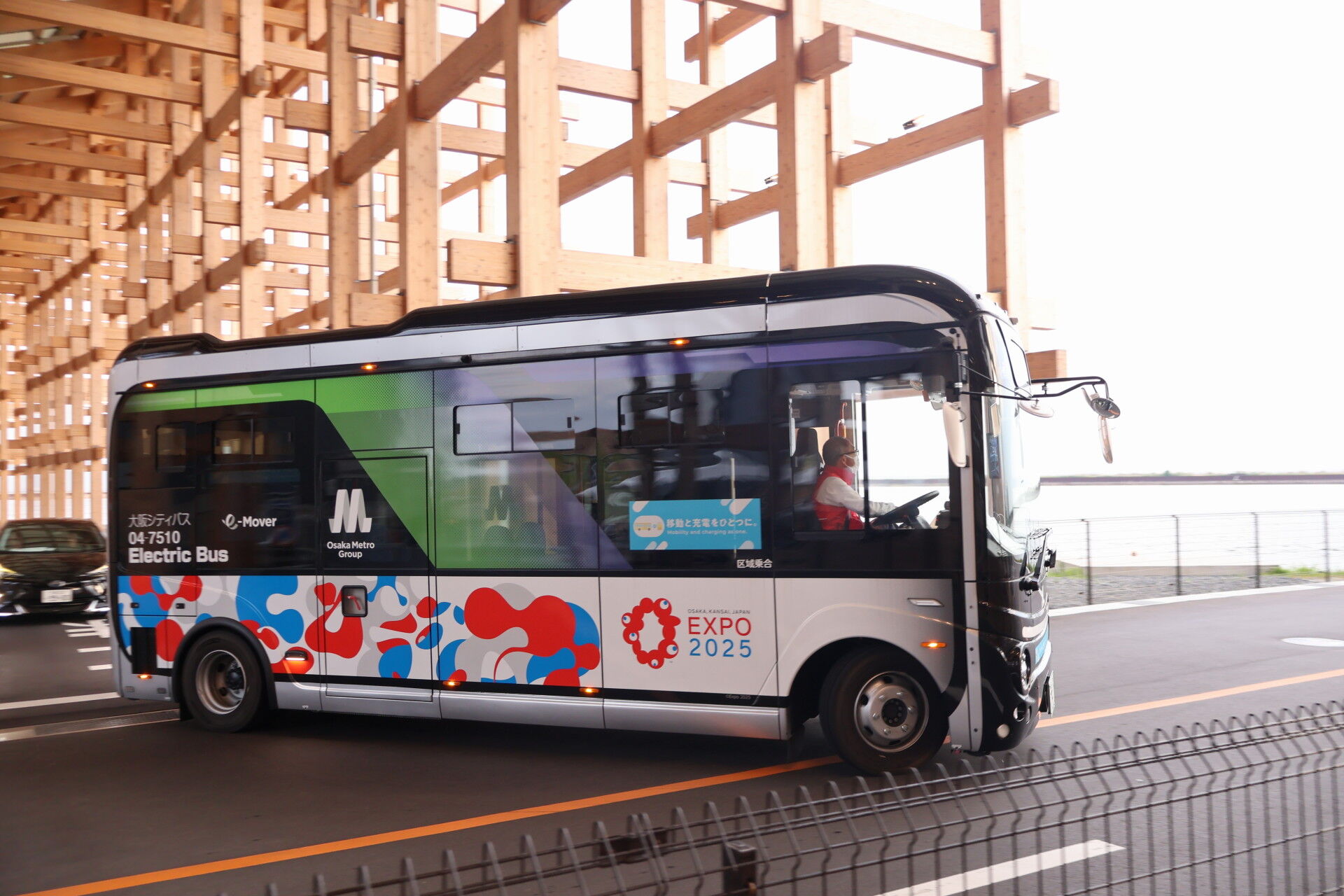 eMoverと呼ばれるバス、自動運転車もあるのですが、違いを抑えきれず。