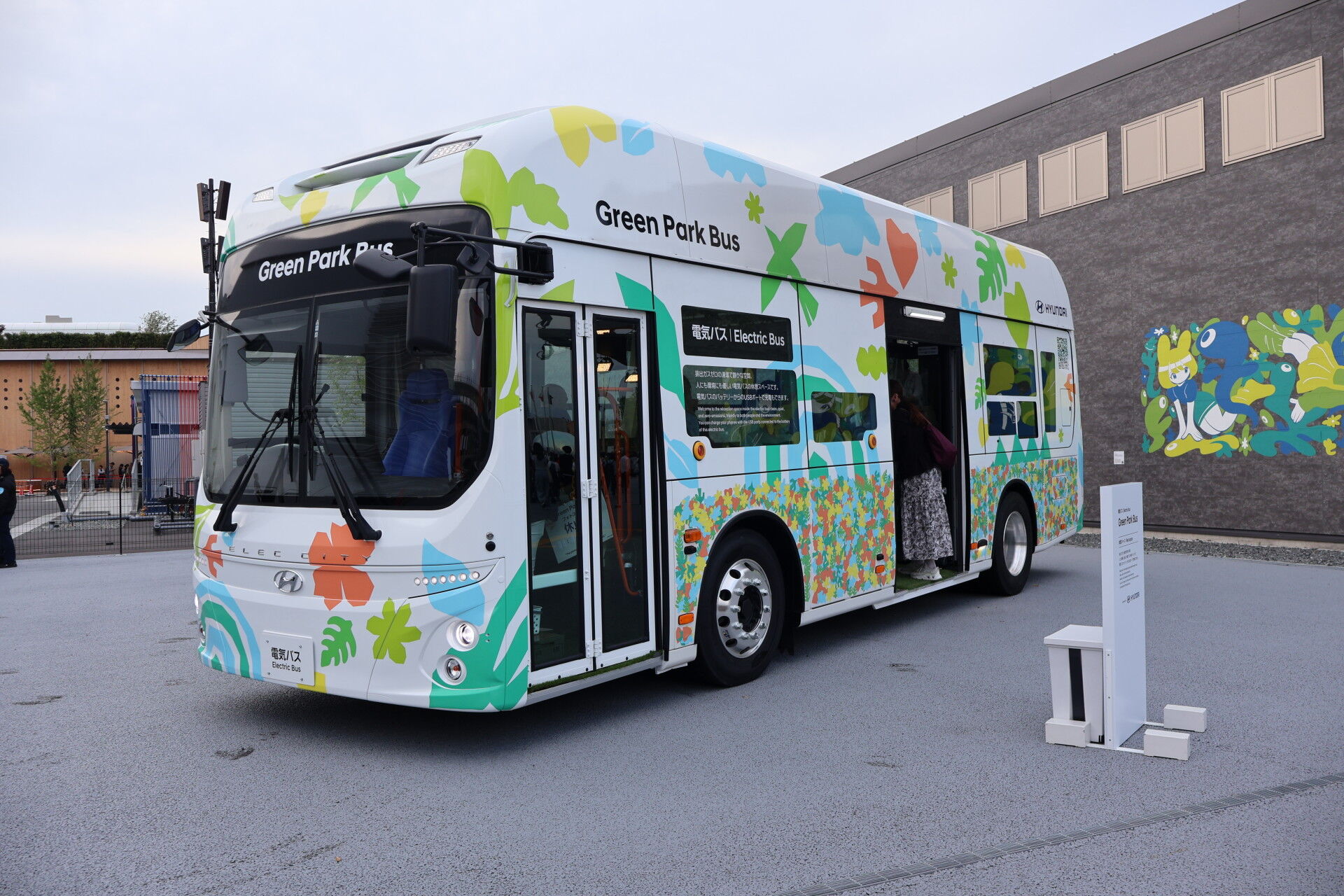 韓国ヒュンダイの電気バスが展示されていました。