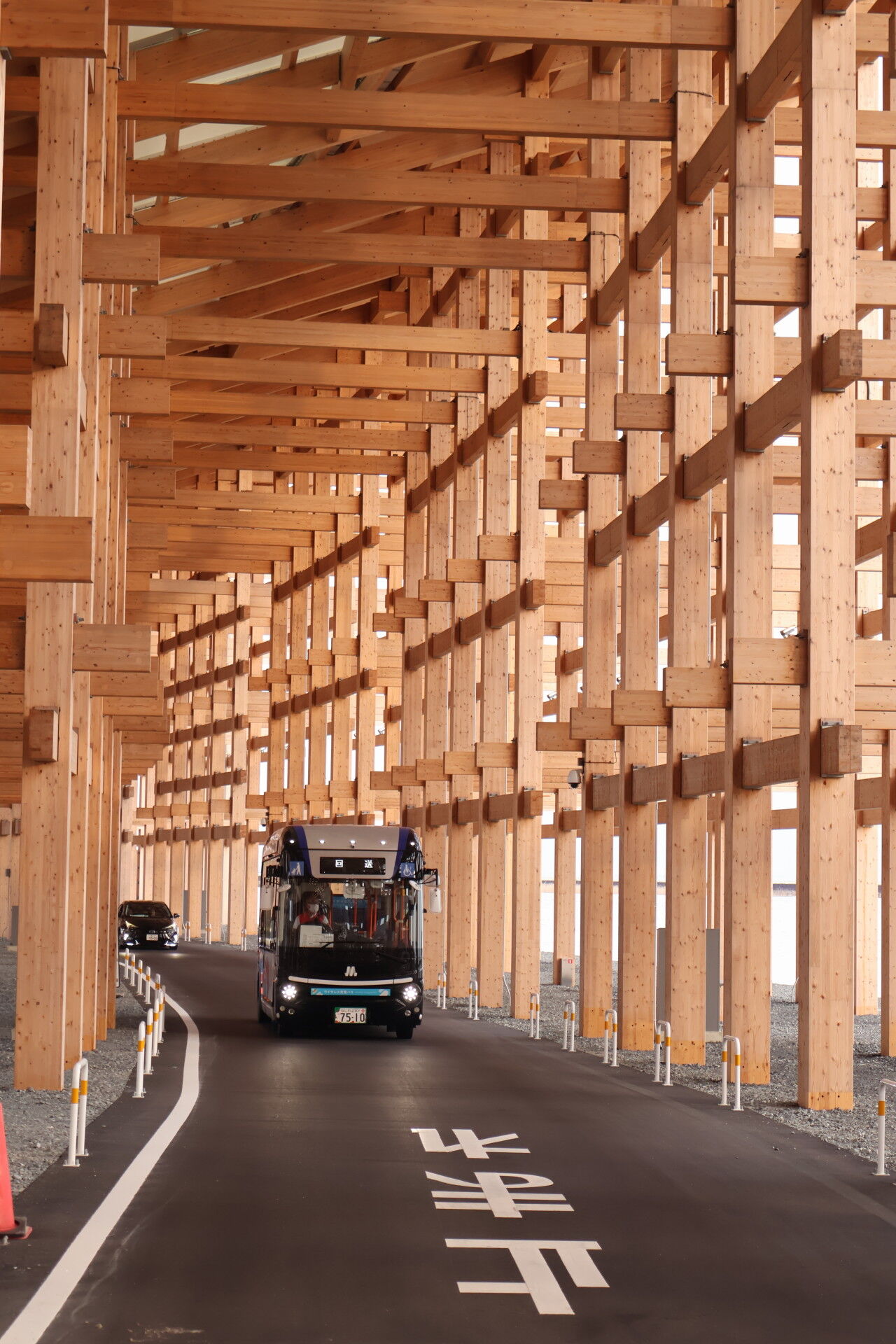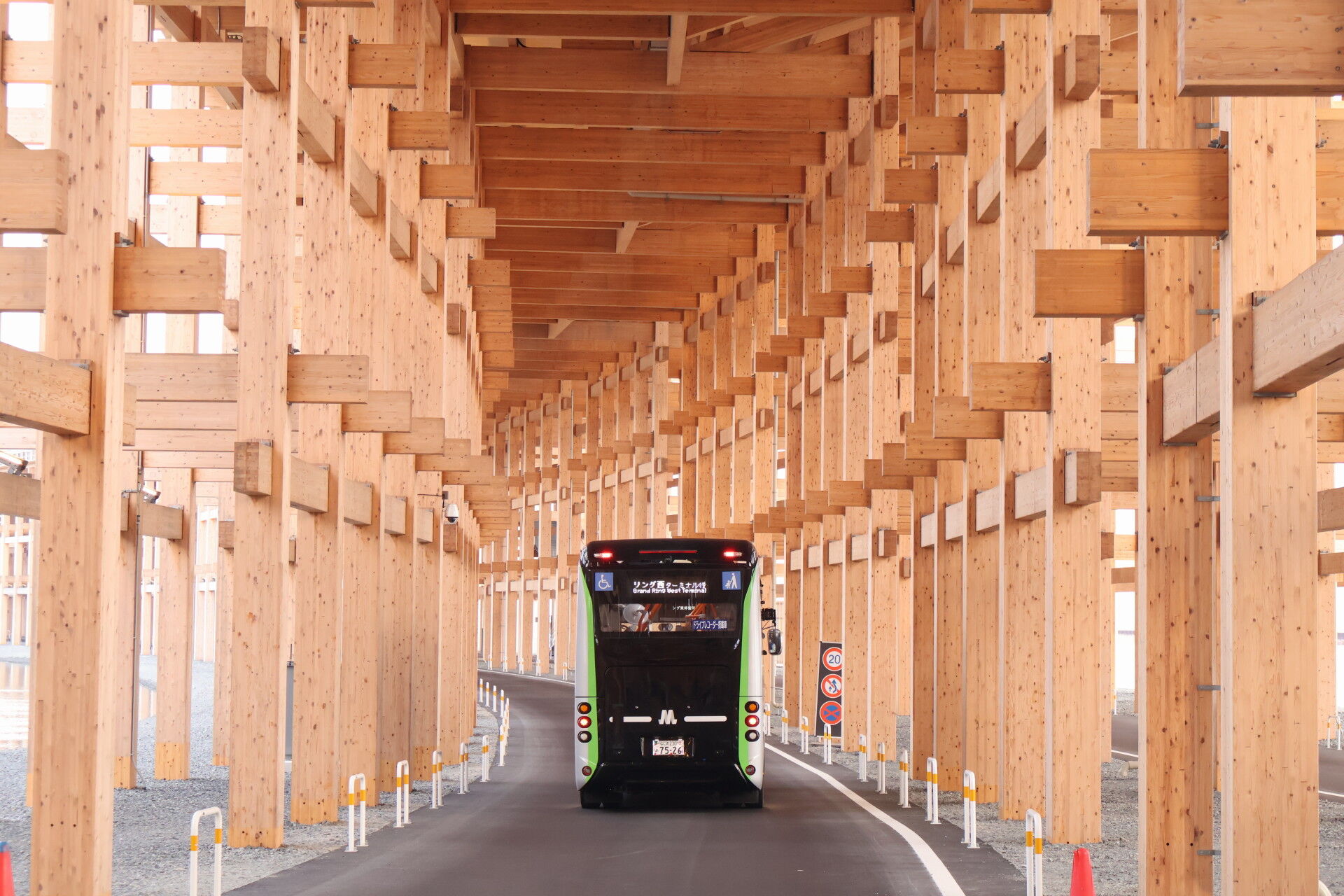 大屋根リングのうち、海側のエリアは会場内シャトルバスなど構内自動車道路になっています。