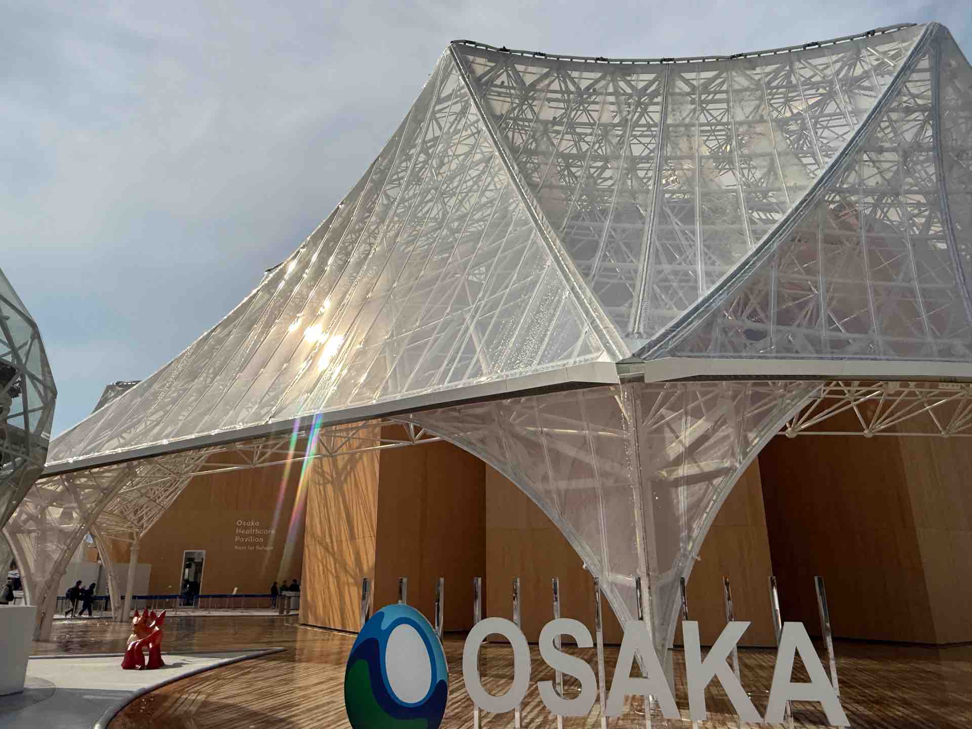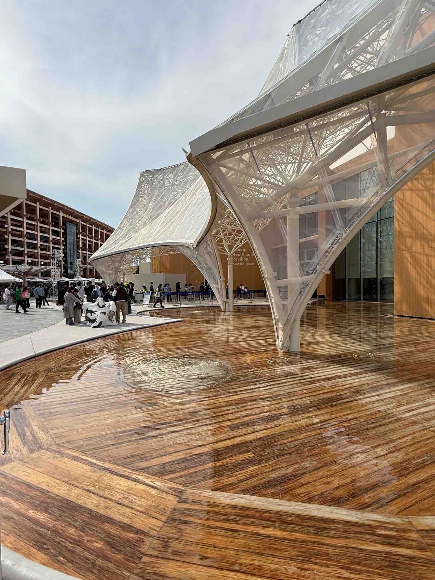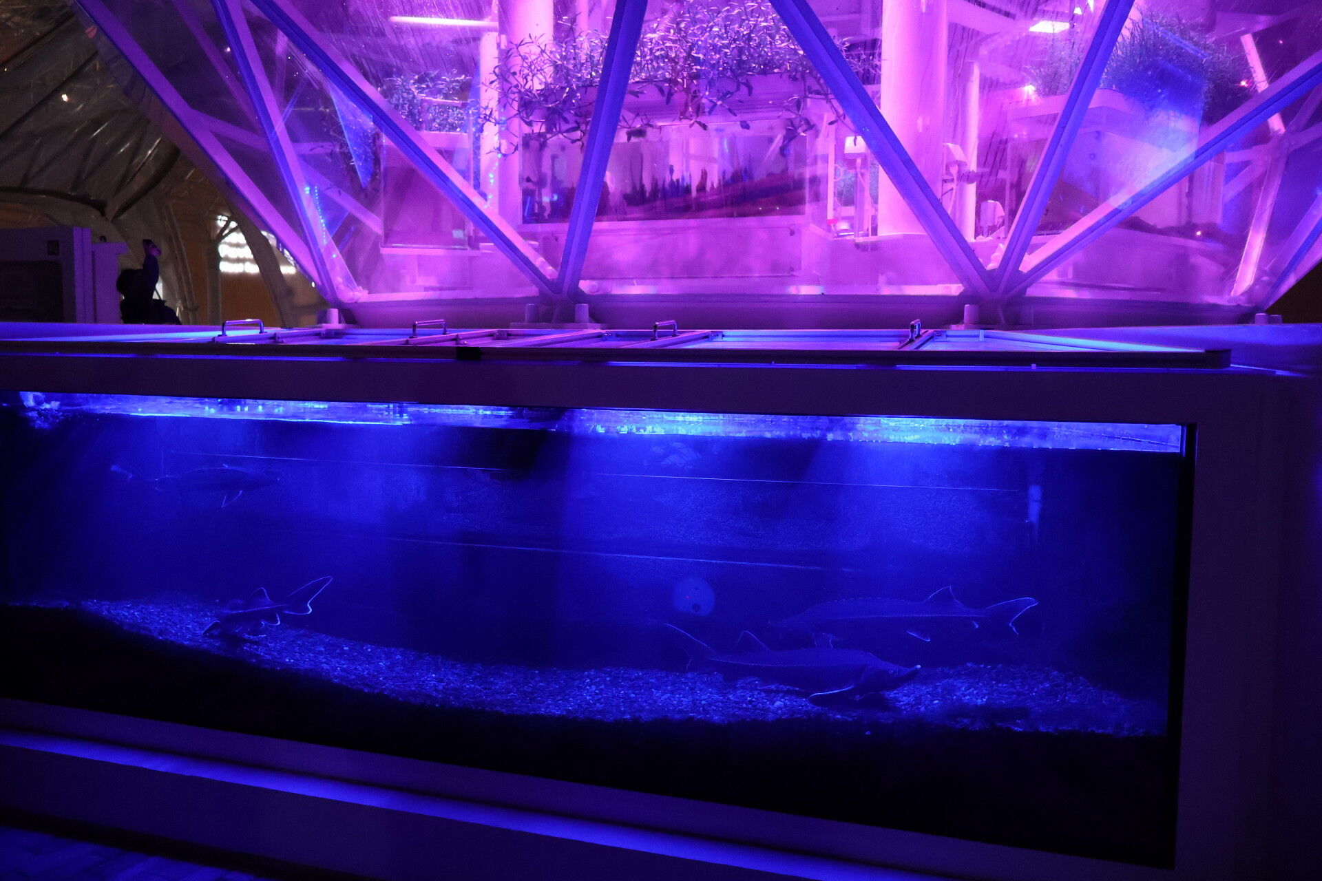 大阪ヘルスケアパビリオン脇のアクアポニックスを眺めます。