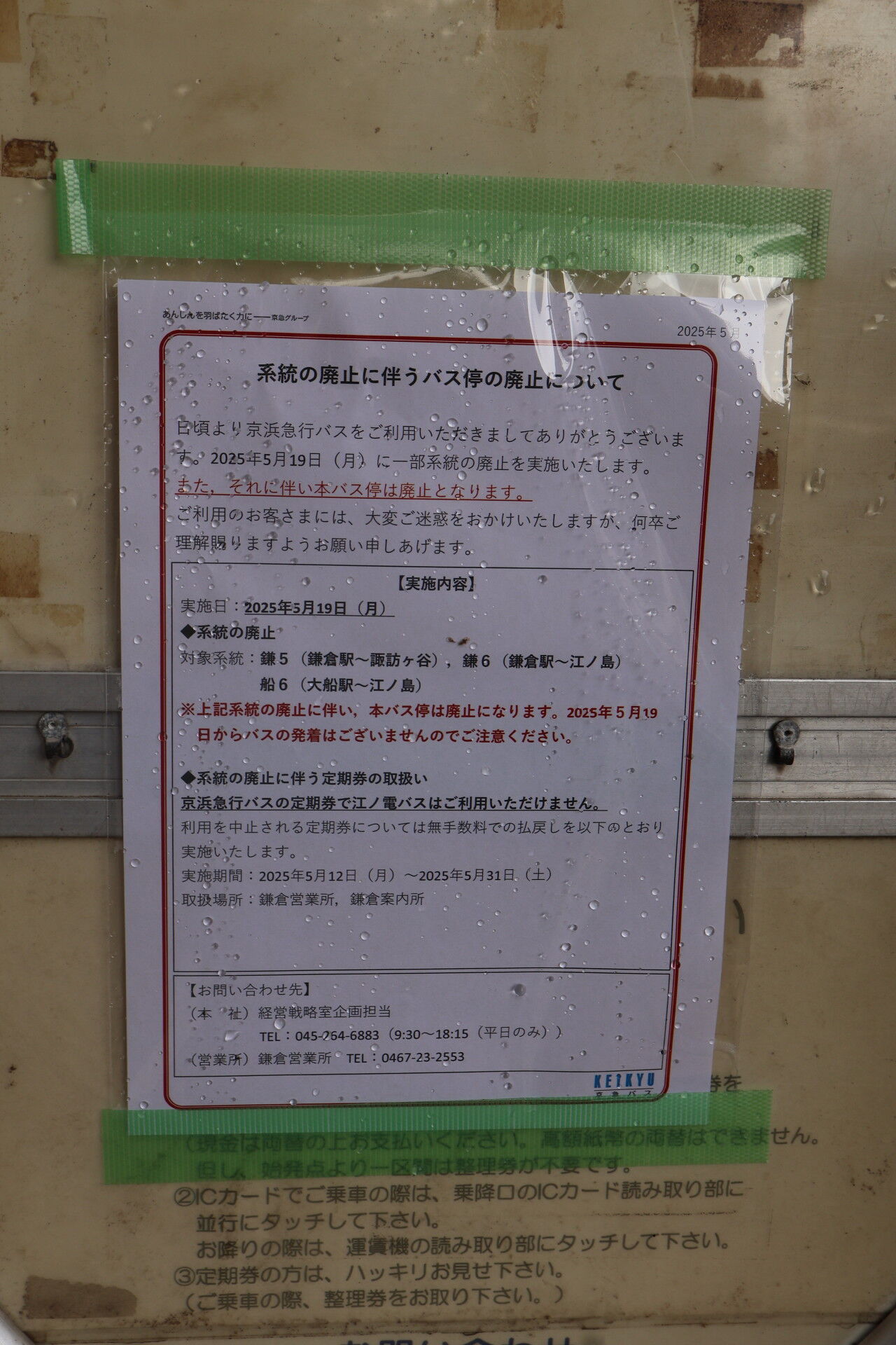 以前から大船発着の船6には何度か乗ってるんですが、鎌6は乗ったことがなかったので、廃止の1週間前に乗りに行ってきました。