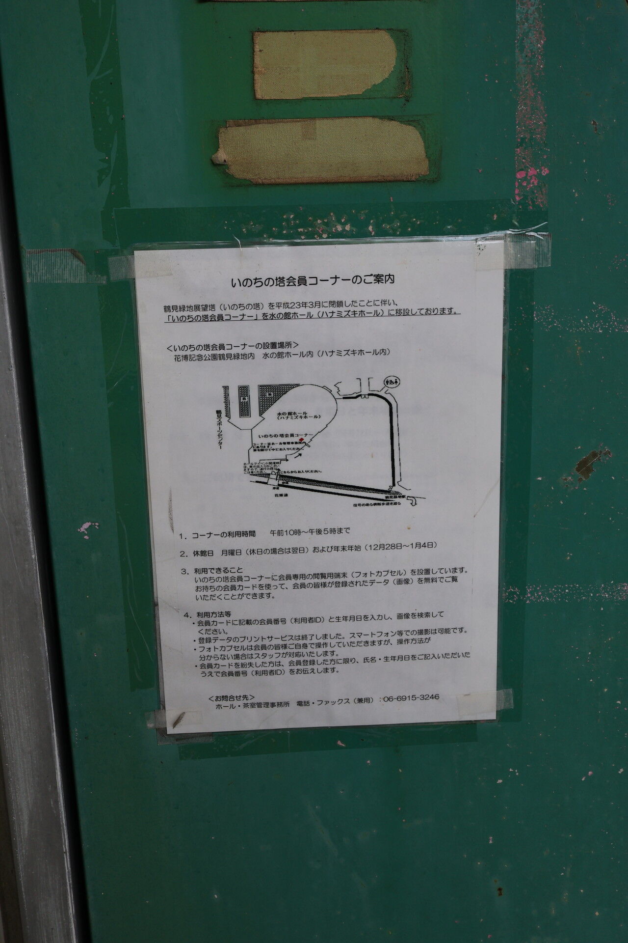 いのちの塔友の会という、90年当時18歳までの子供達を対象にした会があり、建設費を負担したこどもの写真と文書をコンピュータに永久記録し、会員証を機械に読み取らせれば100年後も記録を見られる、というタイムカプセルを作ったようです。