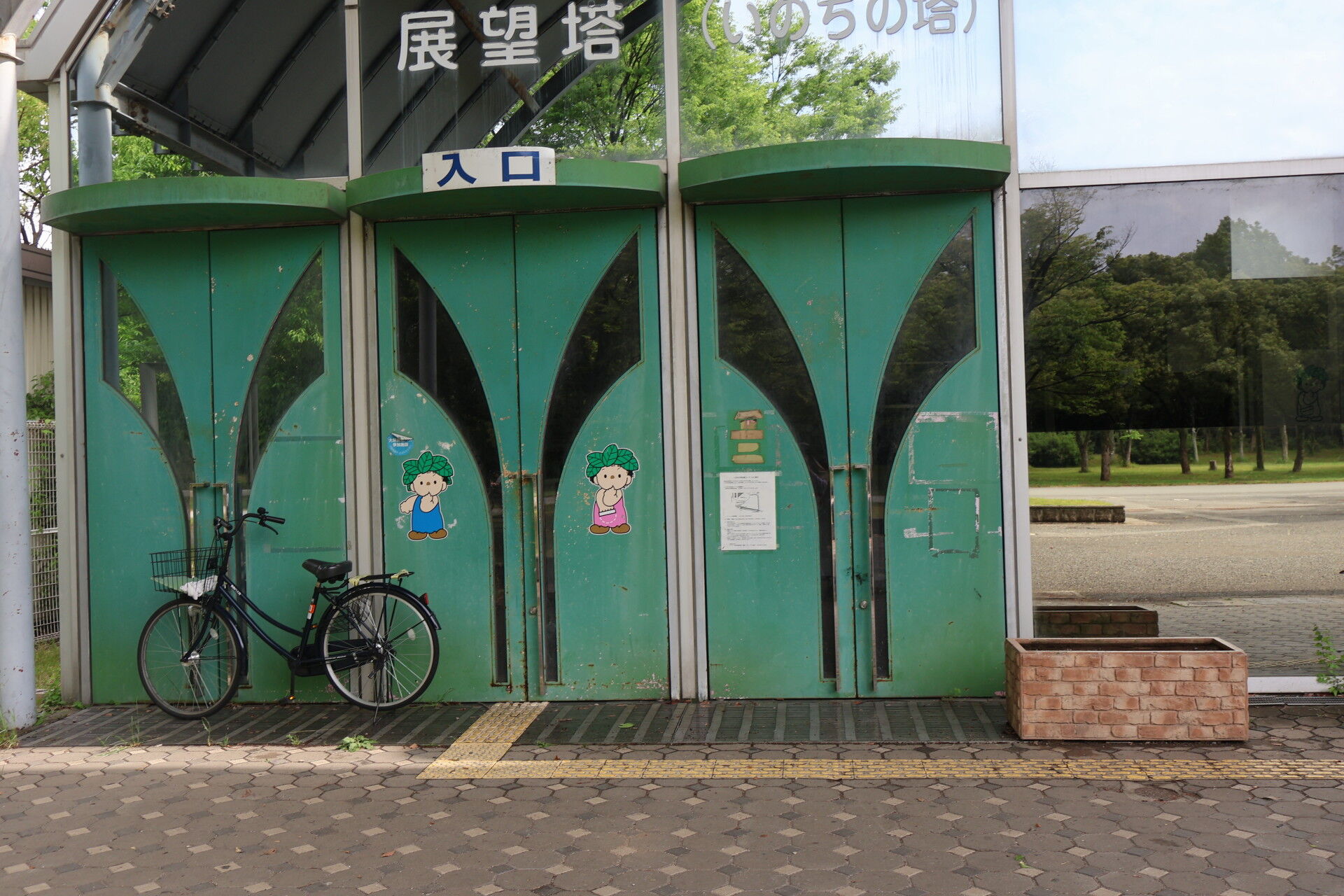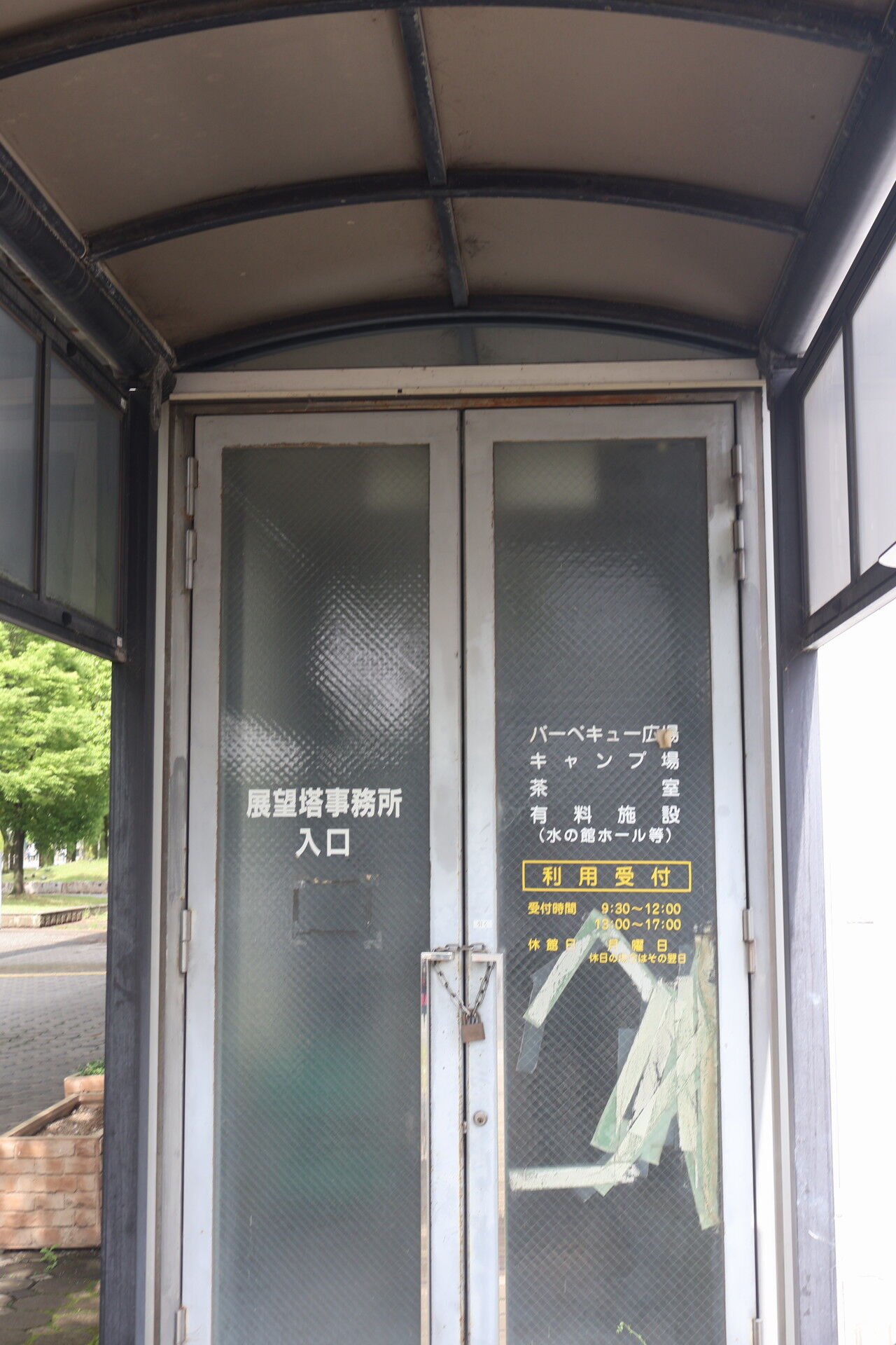 塔の低層部はアクティビティの場としても利用されていたようですが、チェーンでしっかり封鎖されています。